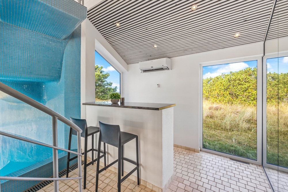 Luksusferiehuset på Nordkrogen 12 i Blåvand er intet mindre end helt fantastisk, og her kommer I ikke til at mangle noget i løbet af jeres ferie! I sommerhuset kan op til 12 personer holde en helt igennem skøn ferie, og her venter jer både et fitnessrum, en stor swimmingpool, spa, sauna og dampkabine, så der er rig mulighed for både at være aktive og få slappet af i løbet af jeres ferie! Desuden ligger sommerhuset ikke langt fra centrum af Blåvand, og der er blot 700 meter til jeres nærmeste indkøbsmulighed.