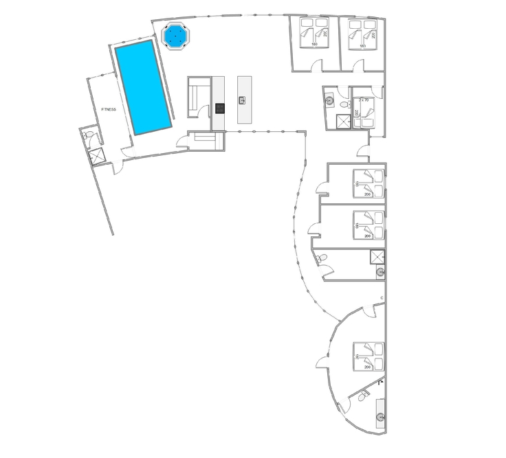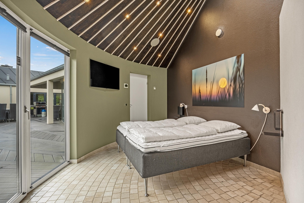 I det 276 kvadratmeter store luksussommerhus venter jer i alt 6 soveværelser, hvor I kan få jer en god nats søvn, så I kan få samlet ny energi til jeres kommende feriedage. På 5 af soveværelserne venter jer dobbeltsenge, mens det sjette soveværelse er indrettet med en etageseng.