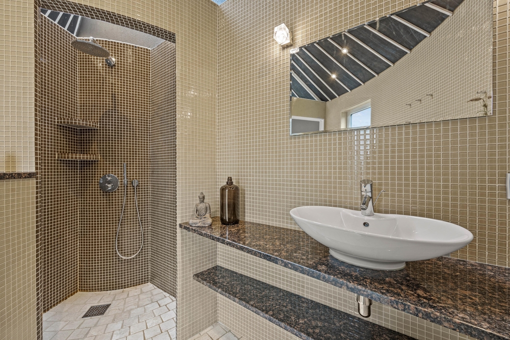 Når I står op næste morgen, er der hverken kø eller kolde tæer på programmet. I sommerhuset er der nemlig hele 3 badeværelser og 1 gæstetoilet med gulvvarme. Derudover kan I også få glæde af gulvvarme i alrummet og på soveværelserne.