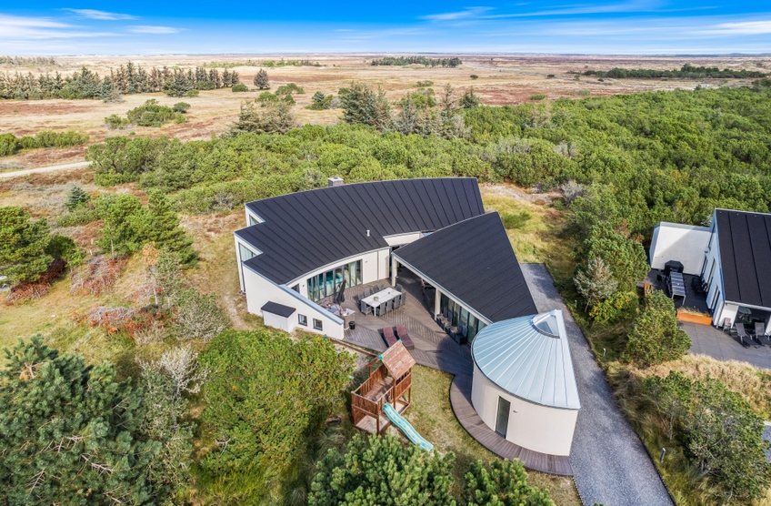 Sommerhuset er ikke kun helt fantastisk indendørs. Udendørs venter jer nemlig også et skønt udeområde, hvor der er tænkt på både børn og voksne. Til børnene står der et legetårn klar, hvor de kan lege i løbet af dagen.