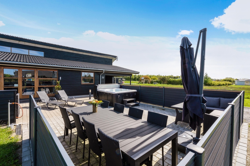 Den lille by Bork Havn ligger smukt ved Ringkøbing Fjord og er den perfekte feriedestination i Danmark for familier med børn, såvel som for de, der elsker vandsport. Dette smukke og eksklusive sommerhus har sauna og spa på badeværelset, samt et udendørs boblebad på terrassen ? det hele venter dig på Nordmarken 77, hvor der er plads til op til 8 personer.