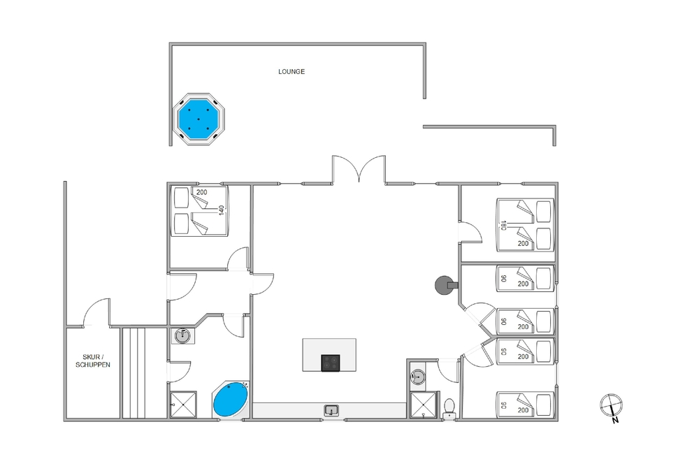Samlet set kan dette feriehus rumme op til 8 personer. 2 badeværelser og i alt 4 soveværelser står til jeres rådighed. Dette sommerhus er både perfekt til en ferie med dine venner eller familie