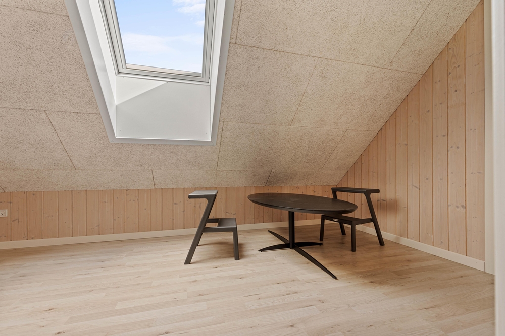 Sommerhuset byder jer velkommen med et stort og åbent køkkenalrum designet til at gøre jeres ophold både komfortabelt og mindeværdigt. Store vinduer lader masser af naturligt lys strømme ind i det lyst indrettede sommerhus, hvilket skaber en indbydende og varm atmosfære. Her kan samtalen flyde frit fra madlavningen i det veludstyrede køkken ned til den hyggelige stueafdeling. Her er der plads til hele familien, så I kan nyde hyggelige stunder med brætspil, film på Chromecast eller blot afslapning efter en dag fyldt med eventyr.