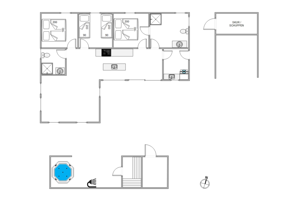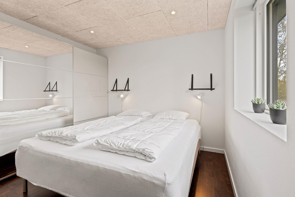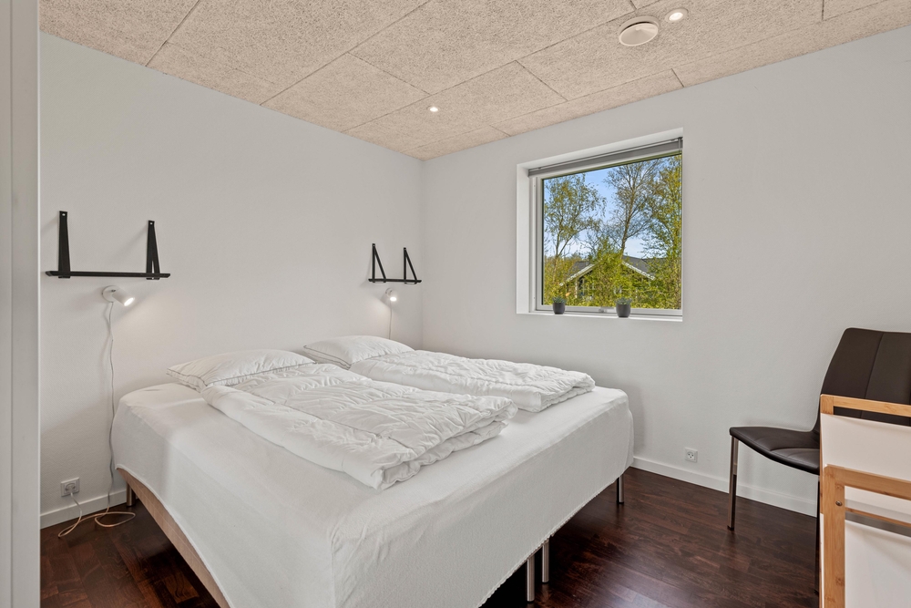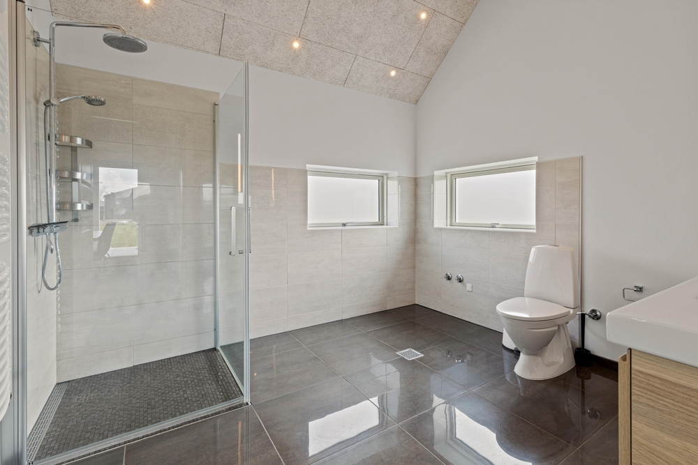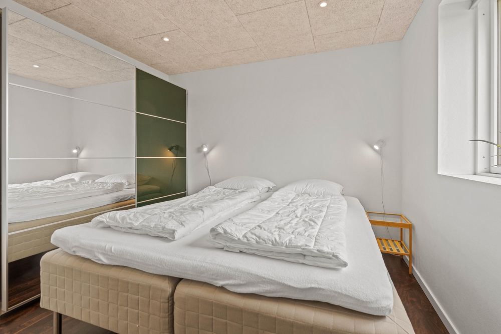 Sommerhuset rummer 3 dejlige soverum; 2 af dem er udstyret med dobbeltsenge og 1 med 2 enkeltsenge, som skaber den perfekte ramme for en afslappende nats søvn. De 2 badeværelser har gulvvarme ? ligesom resten af sommerhuset ? hvilket sikrer, at alle kan starte dagen friske og veltilpasse. Der er også opvaskemaskine, vaskemaskine og tørretumbler, så I nemt kan klare de praktiske gøremål i løbet af ferien.