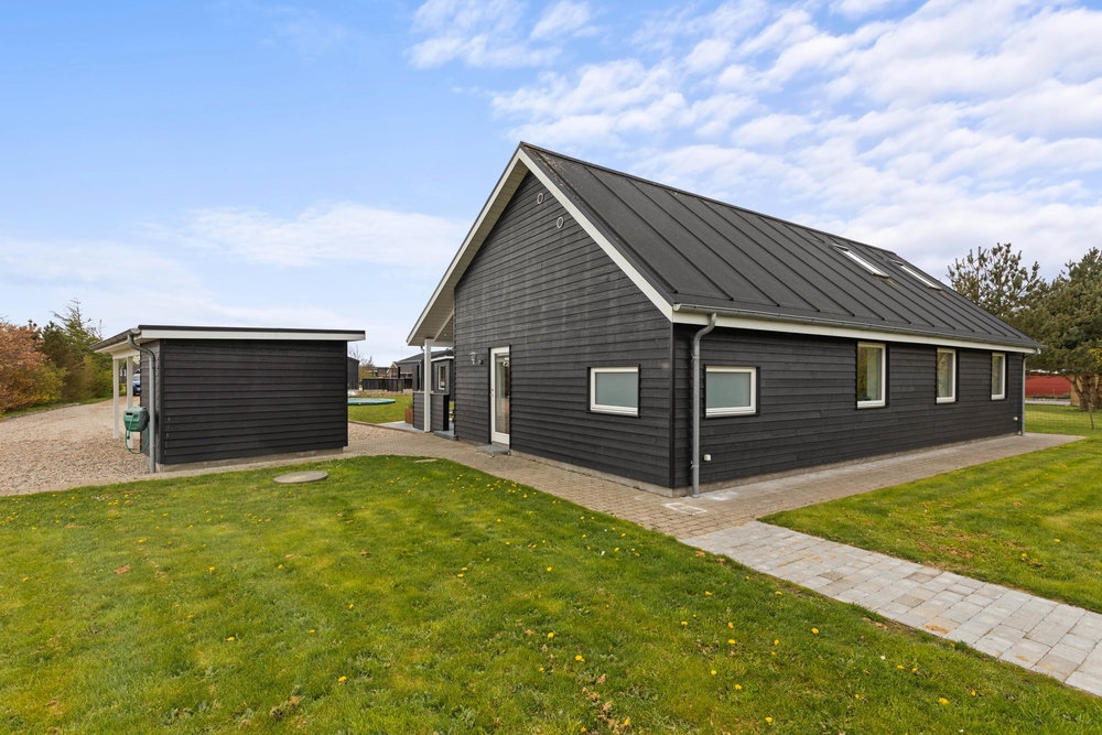 Udearealet er desuden et sandt mekka for de små feriegæster. På den velholdte græsplæne er der rigelig plads til både boldspil og kongespil, hvilket giver mulighed for mange timers leg og latter. Her står også et gyngestativ, en sandkasse og en trampolin, der sørger for, at børnene er underholdt og aktive. Ladestikket til el-bil sikrer, at jeres bil altid er opladet og klar til dagens udflugter.
