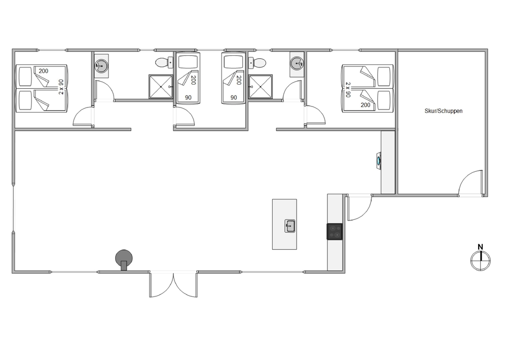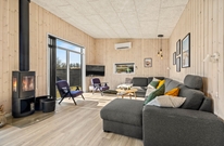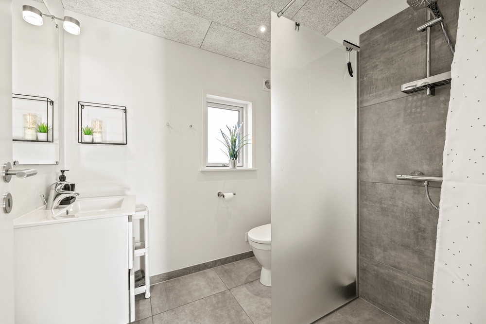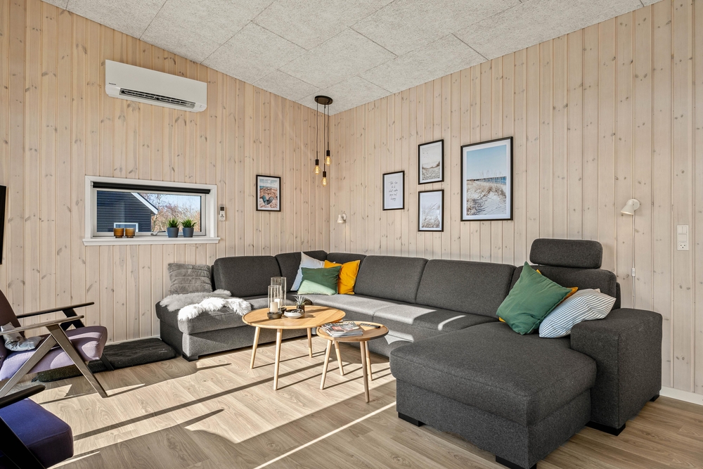 I den hyggelige stue kan hele familien samles i den store sofa og nyde varmen fra brændeovnen på kølige aftener. Feriehusets to moderne badeværelser er udstyret med gulvvarme for ekstra komfort, og de tre lyse soveværelser byder på forskellige sovearrangementer, herunder to dobbeltsenge og to enkeltsenge, så I alle kan hvile ud til de lyse og luftige omgivelser i dette dejlige sommerhus.