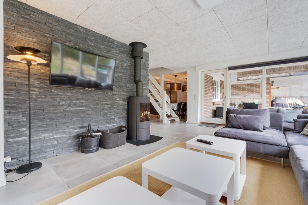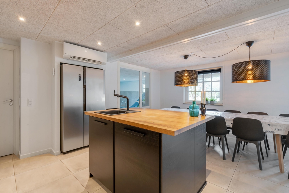 Sommerhusets alrum er det store samlingssted på ferien. Her kan I samles til gode måltider ved spisebordet eller sætte jer til rette i den store sofa og se en god film. Ellers kan I også spille Playstation eller samles omkring billard- eller bordfodboldbordet til en sjov spilaften.