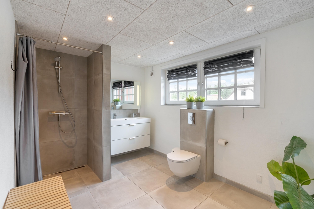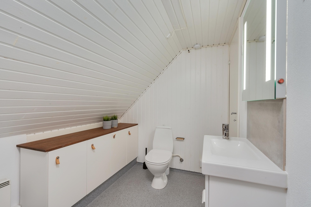 Det 270 kvadratmeter store sommerhus er velindrettet med god plads til alle 12 feriegæster. Feriehuset har 6 soveværelser, hvor I kan få jeres skønhedssøvn. I feriehuset er der desuden 2 badeværelser med gulvvarme. I stueetagen og på førstesalen er der luft-til-luft varmepumpe.