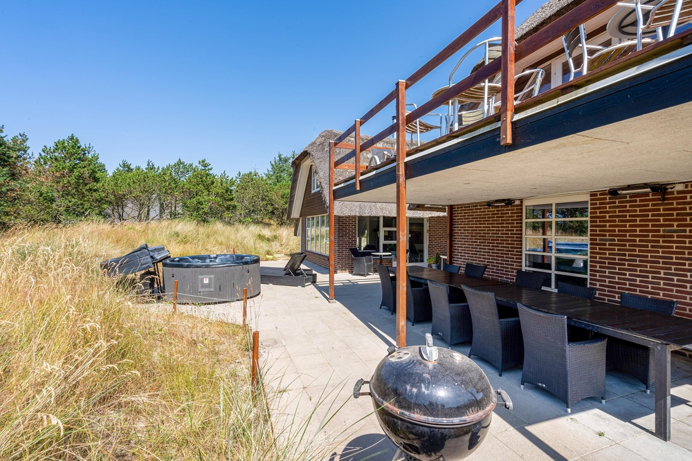 Fra førstesalen kan I træde ud på altanen, hvor I kan læne jer tilbage i havemøbler og slappe af i solens stråler og nyde udsigten til den vestjyske natur. Ellers kan I også tilbringe de solrige feriedage på terrassen, hvor I både har havemøbler, liggestole og gasgrill til rådighed.