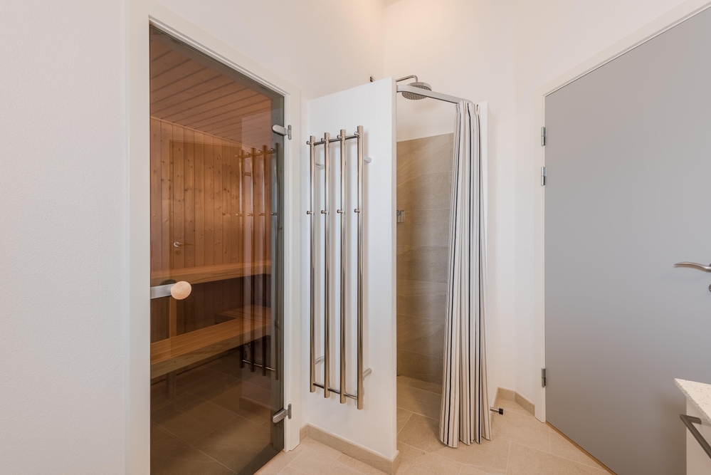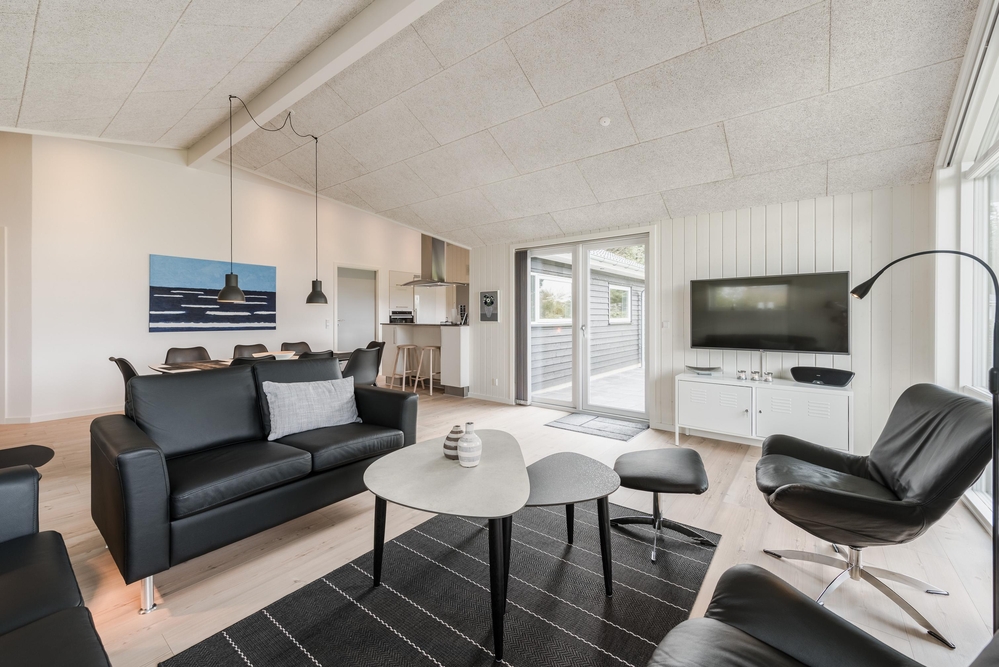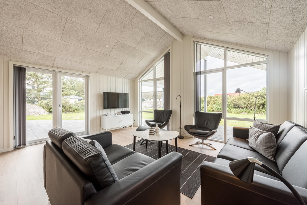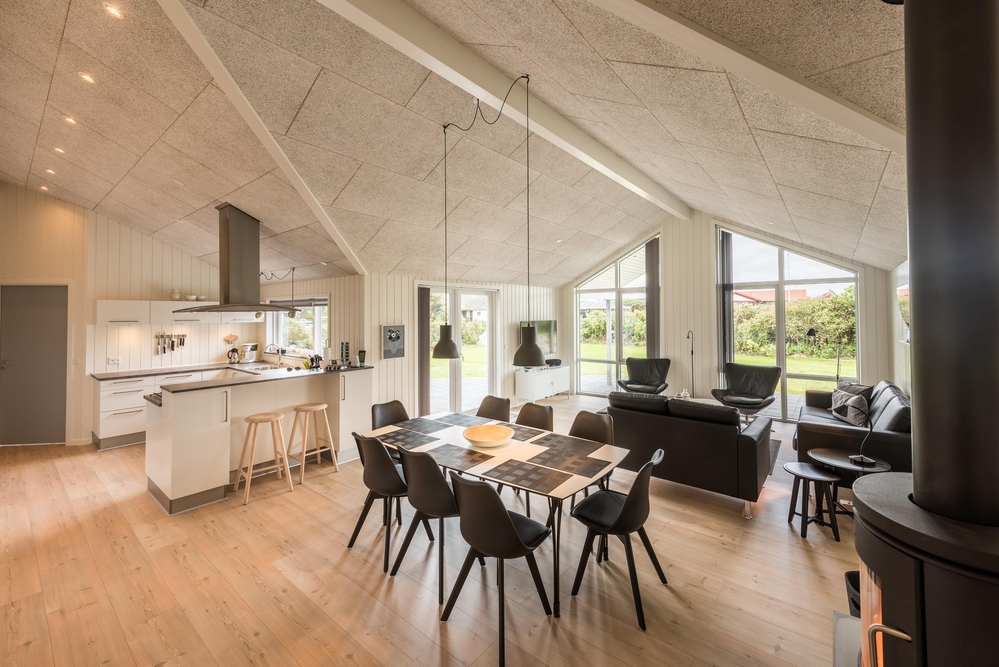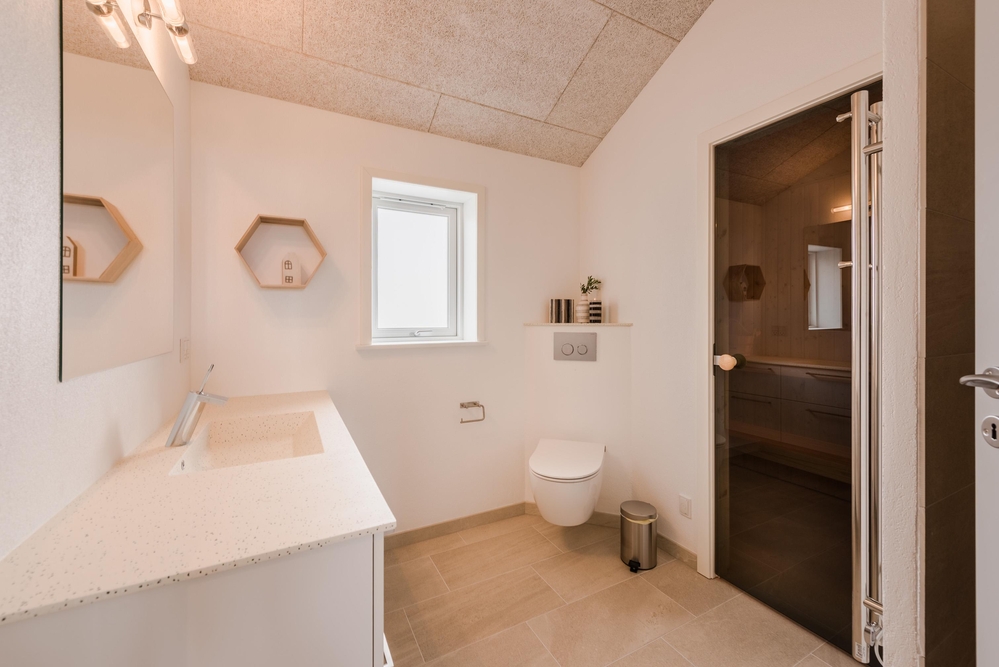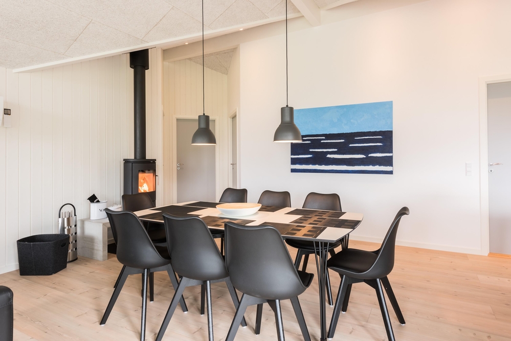 Hvem ville ikke sidde her og nyde varmen fra brændeovnen på en kølig dag, og da især efter en rask travetur til havet ? så falder der ro på alle. Og hvis I virkelig trænger til at blive varmet rigtig godt igennem, er der en dejlig sauna, hvor I kan slappe af og nyde et strejf af hjemme-wellness, mens børnene ser film på det store fladskærms-TV i huset eller surfer på husets stabile fiberinternet. En luft-til-luft varmepumpe bidrager til et behageligt indeklima i hele huset.