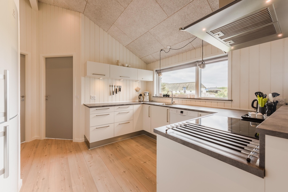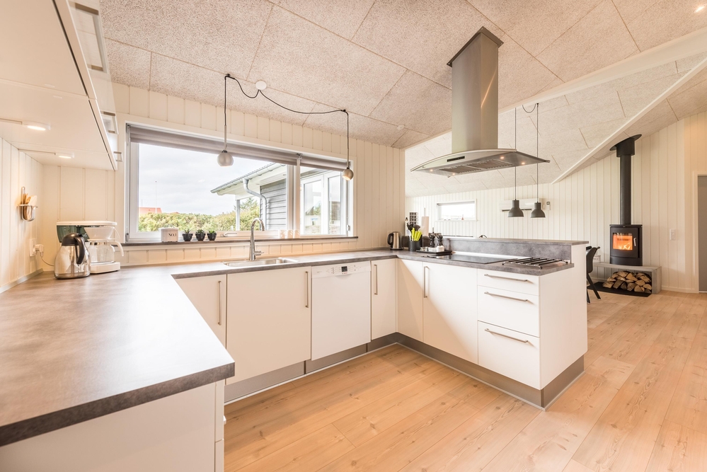 Sommerhus i Søndervig er designet til at gøre jeres ophold så problemfrit som muligt. Køkkenet er veludstyret med alle nødvendige faciliteter, inklusive opvaskemaskine og en 90 liter separat fryser, som gør madlavningen til en leg. Feriehusets vaskemaskine og tørretumbler sørger for at hverdagens praktiske gøremål let kan klares, samtidig med at I ikke behøver at pakke en masse tøj til jeres ophold.