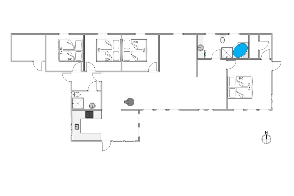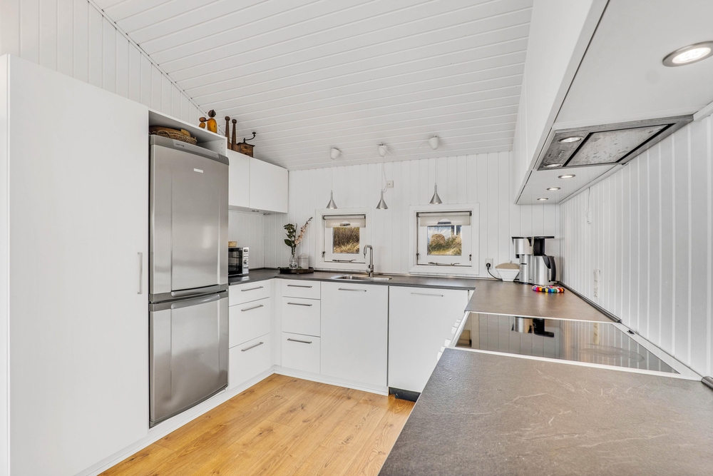 Da sommerhuset kun befinder sig 450 meter fra den nærmeste strand, vil det blot tage jer 10 minutter at komme ned til vandet og få en dukkert. Og efter en god dag ved standen, kan I rigtigt mærke følelsen af velvære i sommerhusets spabad. Sommerhuset er desuden indrettet med to badeværelser, som begge har indbygget gulvvarme. Derfor kan I både undgå kø til toilettet samt at fryse jeres fødder om morgenen.