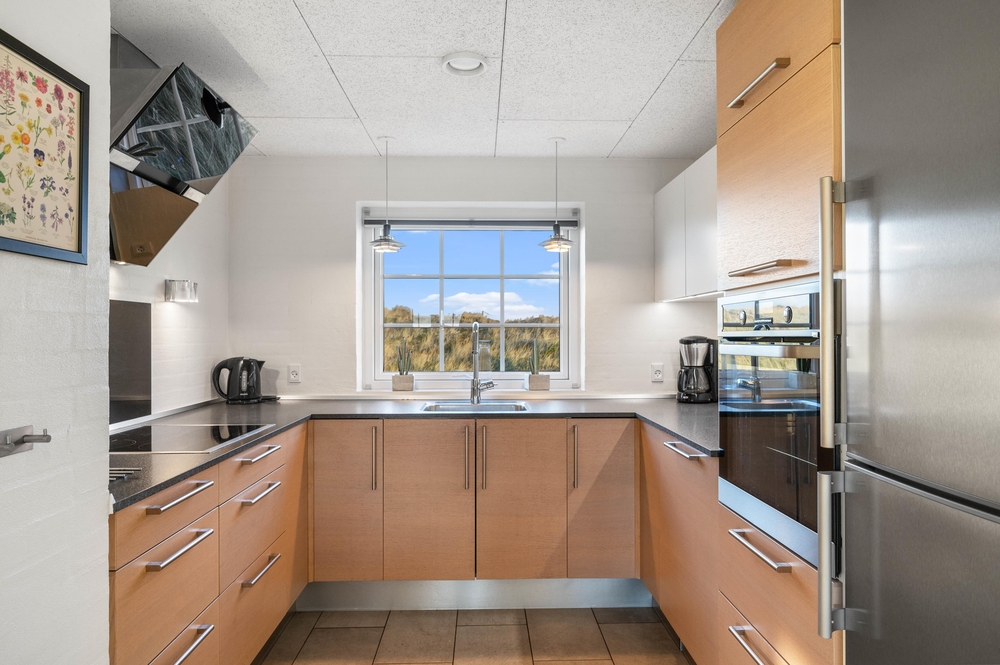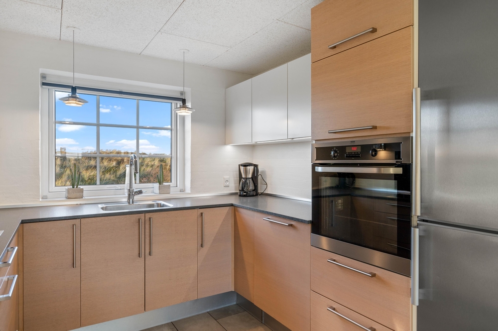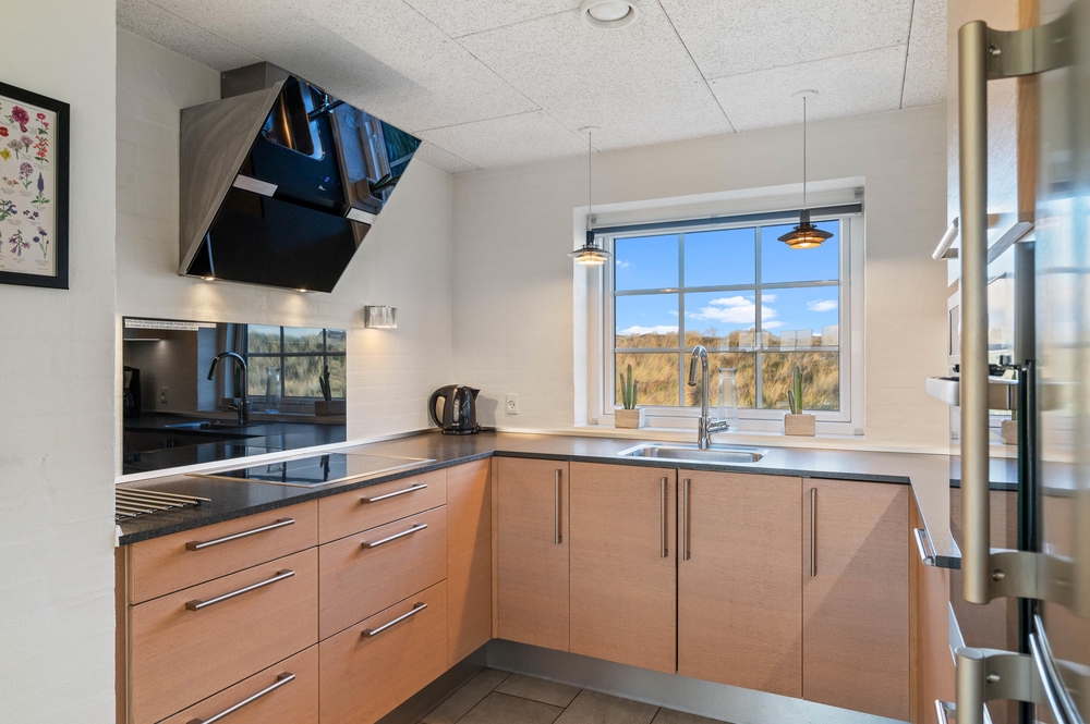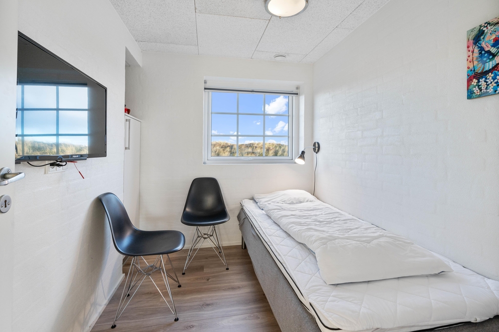 Her kan du nyde gode soveværelser med elevationssenge og smart TV med egen receiver, så det er muligt at se forskellige tv-programmer uafhængigt af hinanden. Derudover der et ekstra værelse med hems, hvor børnene kan lege, mens mor og far nyder udsigten til klitterne og fjorden fra den hyggelige stue.
