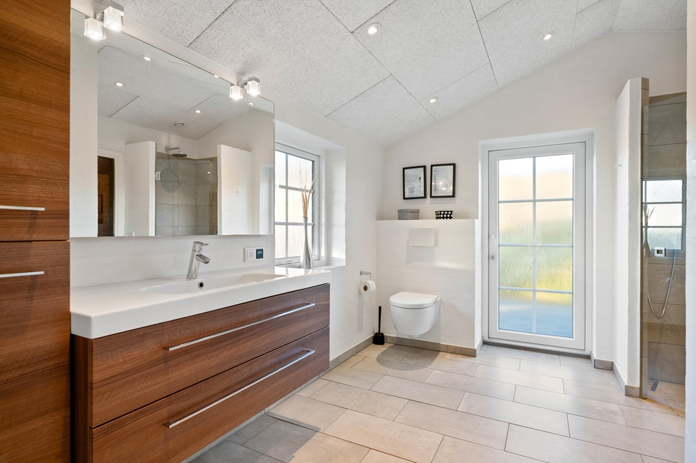 Stranden ligger kun en kort vandretur fra feriehuset, så du nemt kan komme ned til stranden og tage en forfriskende dukkert på de varme sommedage eller sidde på en klittop og nyde en smuk solnedgang. Feriehuset har en også praktisk udebruser, så du kan skylle sand og salt af, når I kommer tilbage fra stranden af. Udebruseren kan bruges fra april til november.