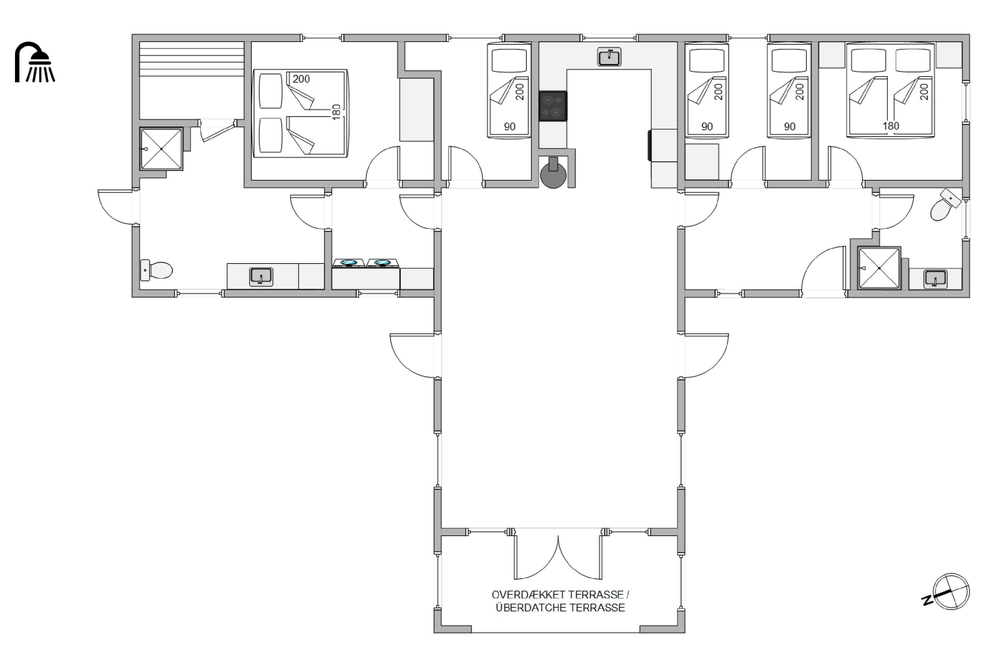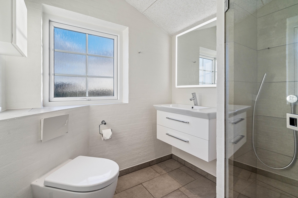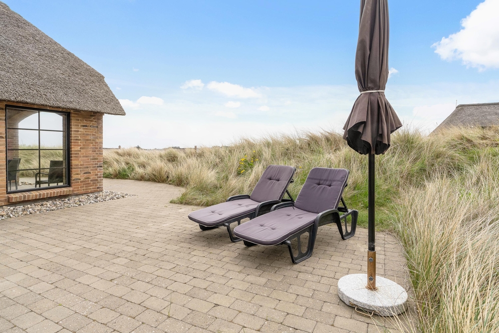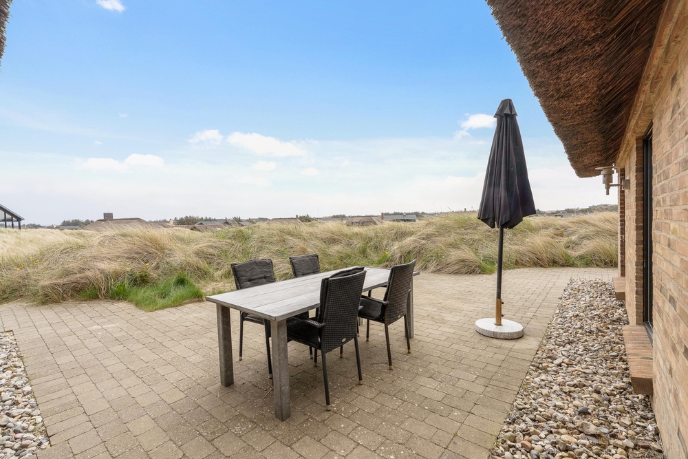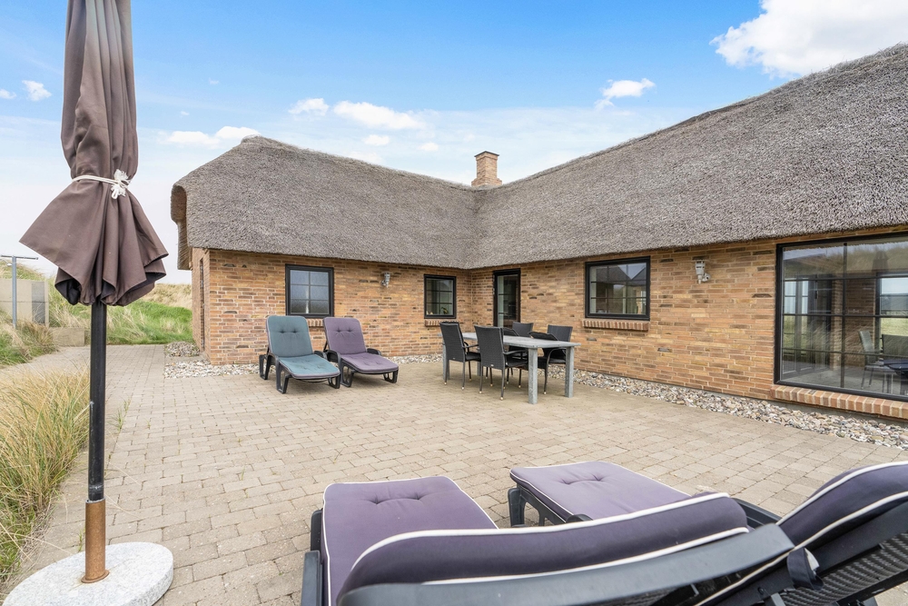 Terrassen i øst er især dejlig på de lune sommermorgener, hvor du kan sidde ude og nyde morgenkaffen. I sydvest er der en helt ugeneret terrasse, hvor du kan slappe af i liggestolen, læse en god bog og nyde den friske havluft. Og den dejlige terrasse i syd er både overdækket og afskærmet, så du her har både skygge, læ og ly ? perfekt til de hyggelige grillaftener.