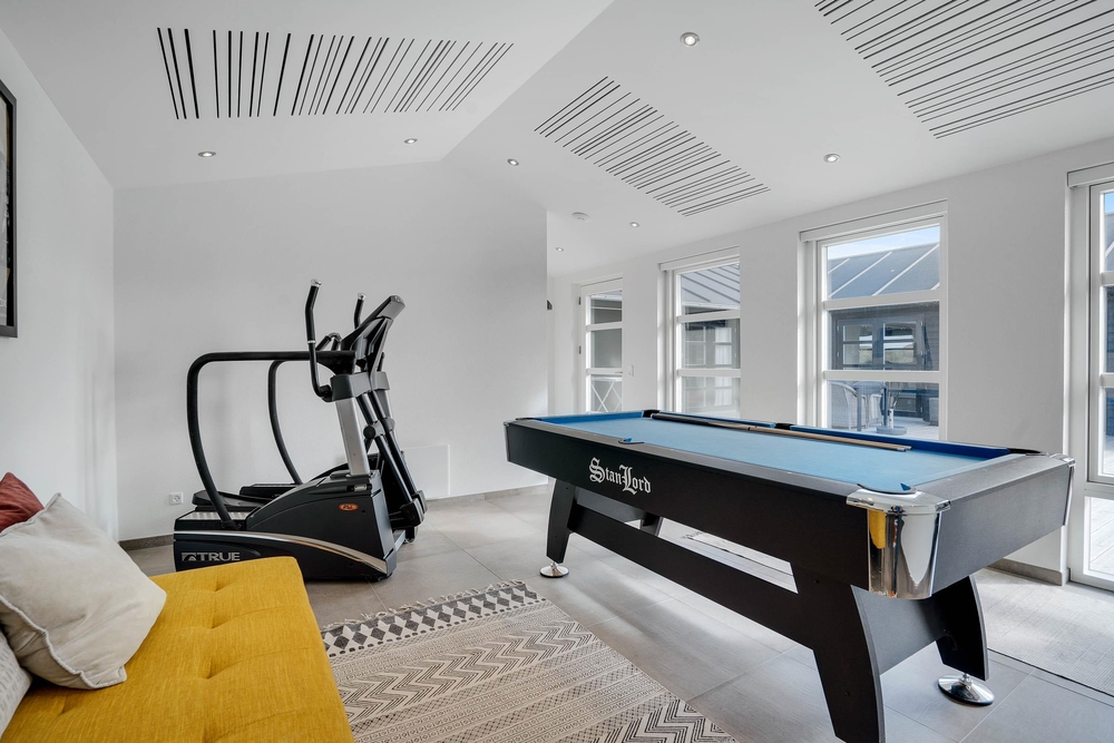 Endnu et feriehighlight er bestemt aktivitetsrummet, der er indrettet med både billardbord og crosstrainer. Her kan de aktive feriegæster rigtig få lov til at slå sig løs og bruge noget energi!