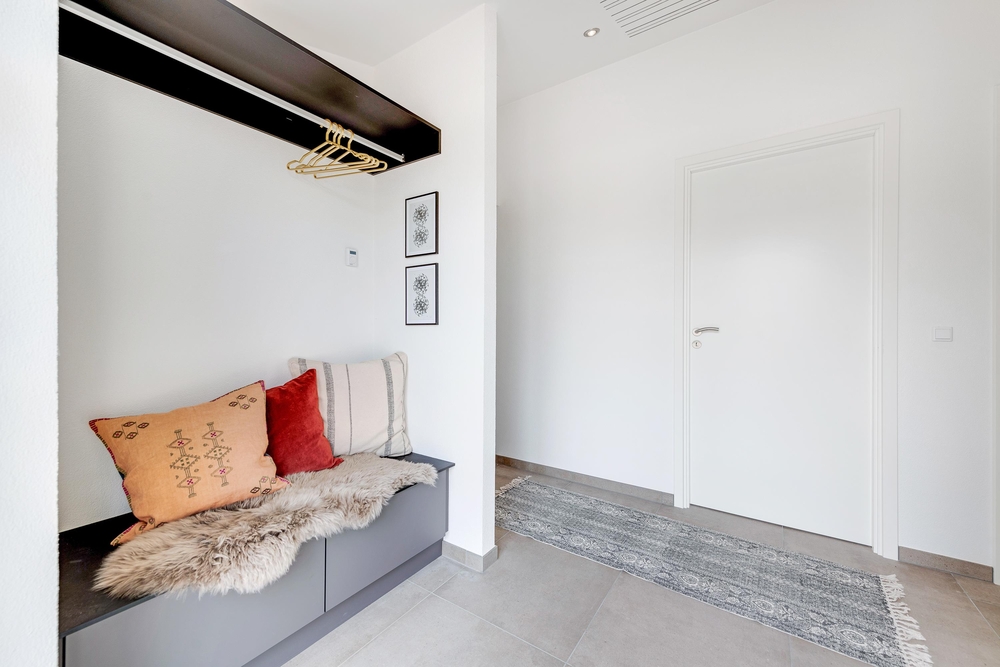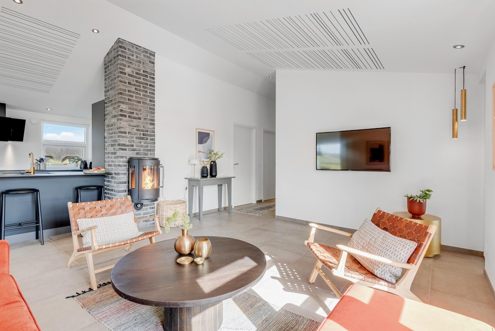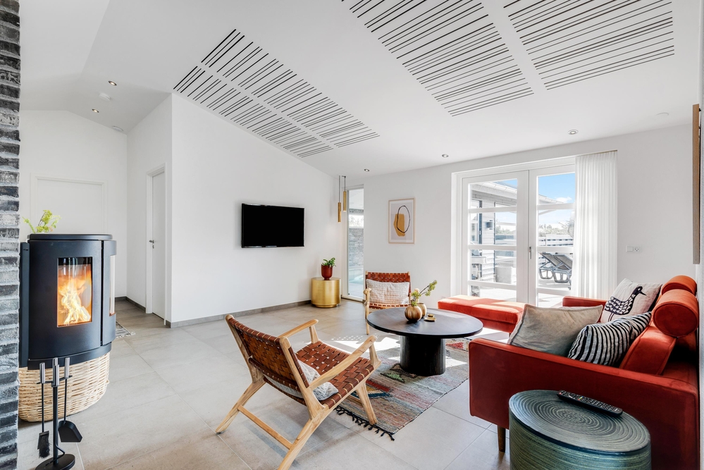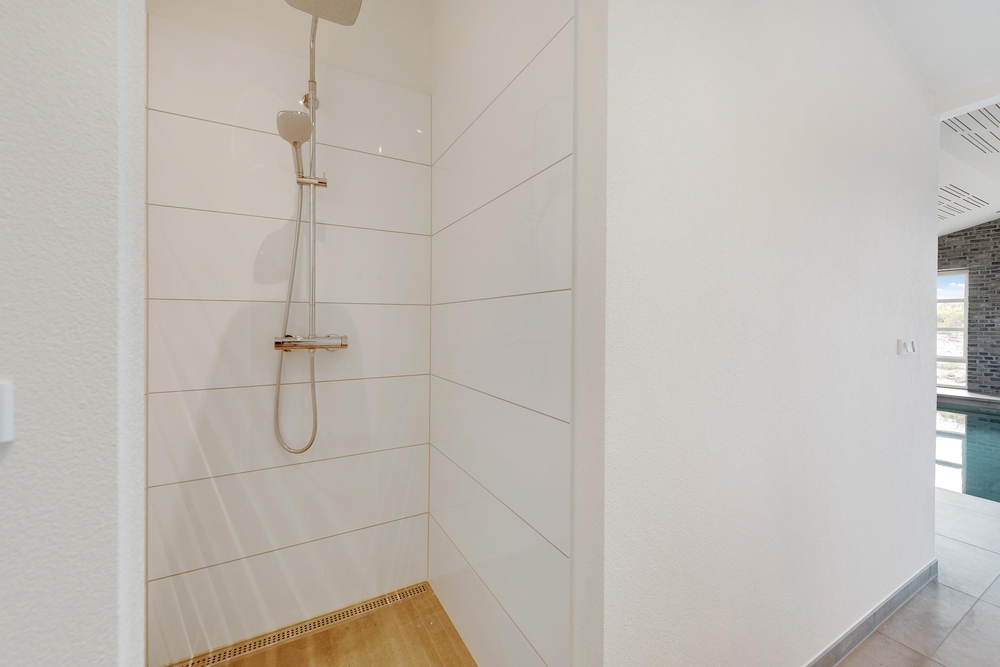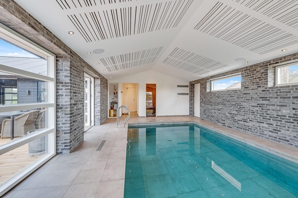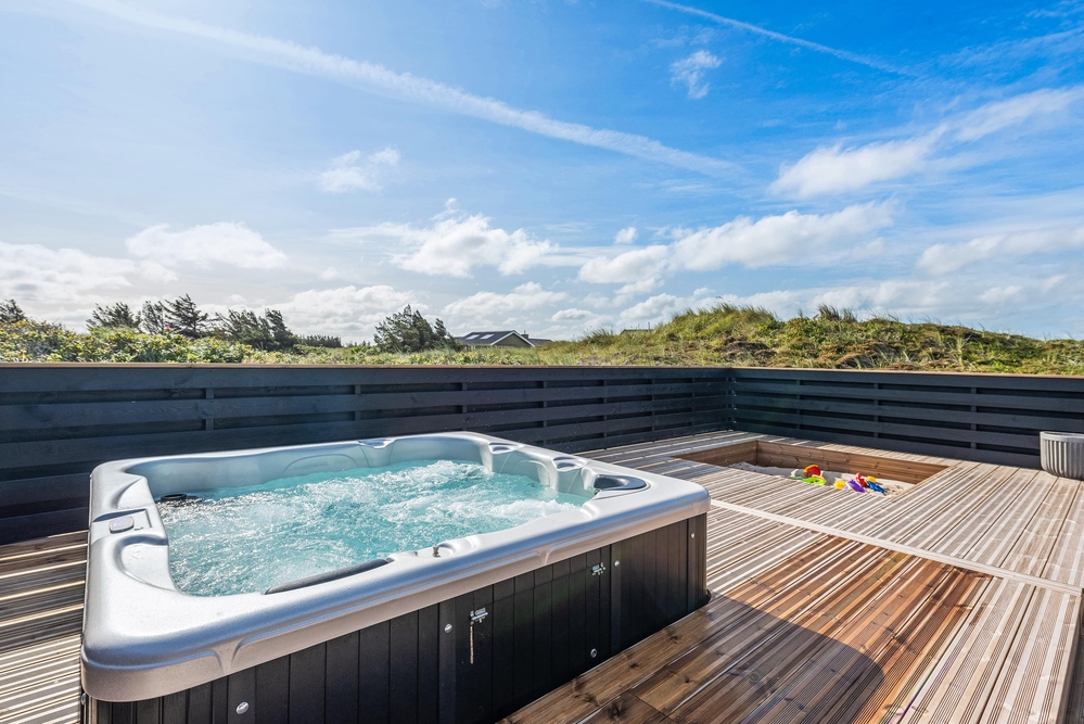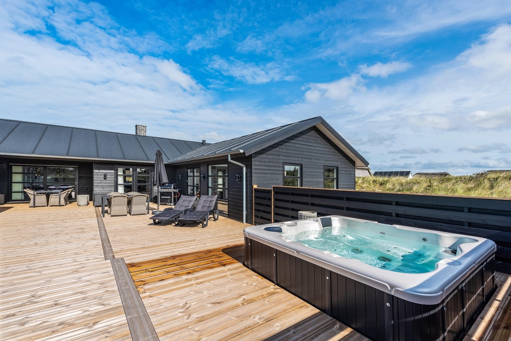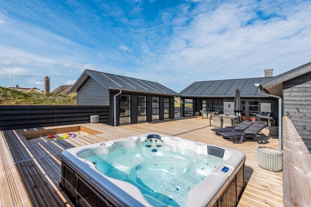 Feriehuset, der er 5-stjernet, er den perfekte ramme for en mindeværdig og afslappende ferie i skønne omgivelser. Det er moderne indrettet i et lyst og lækkert design. Her kan I få en masse gode timer til at gå, med svømmeture og leg i swimmingpoolen samt afslapning i saunaen og hygge i den skønne udendørs spa.