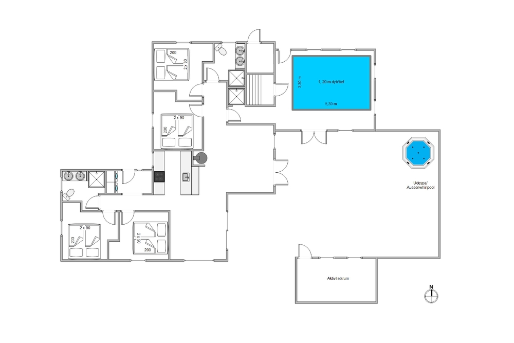 Tæt på stranden på Nordsøvej 388 i Søndervig ligger dette superlækre nye feriehus, som indbyder til en afslappende ferie for hele familien ? også de firbende familiemedlemmer. Trænger I til at koble helt fra, og glemme en stresset hverdag, så tag hele familien med i dette fine nybyggede feriehus. Hop i swimmingpoolen eller nyd spabadets bobler og få derefter varmen i kinderne i saunaen, slå jer løs i aktivitetsrummet ? og bare nyd en afslappende ferie. Hvis I ankommer med el-bil, er der installeret en ladestander ved feriehuset, som I har til rådighed under jeres ophold.
