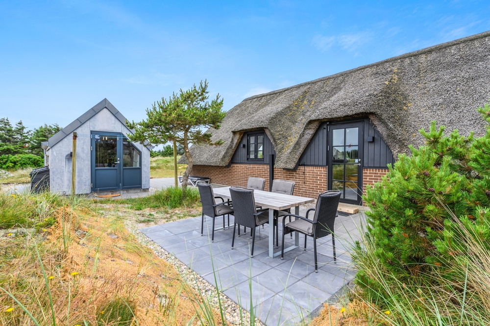 Det 88 m2 store sommerhus passer med sit stråtækte tag godt i ind klitlandskabet og den fine natur. Takket være en en gennemgående renovering i 2021 er 80?er-huset forvandlet til en dejlig, lys ferieperle, som danner en god ramme om en skøn ferie.