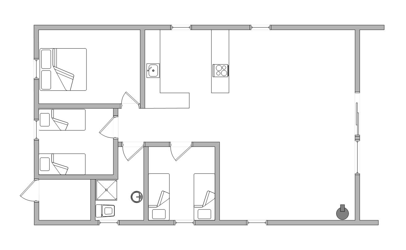 Huset er indrettet med 3 gode soverum og et stort, flot køkken i åben forbindelse med stuen, som er husets hjerte. De sprossede vinduer skaber en hyggelig stemning i rummet samtidig med, at de lukker en masse lys ind i stuen. Her kan I rigtig slappe af og føle jer hjemme.