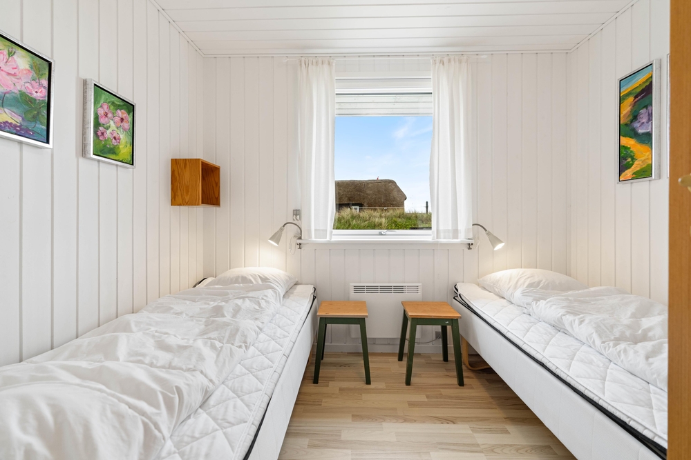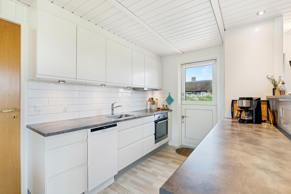Når man bor i et feriegus tæt på standen, er det skønt med et praktisk og rengøringsvenligt trælaminatgulv, især hvis man har børn og hund med. Sommerhuset er opført som de klassiske sommerhuse var i Søndervig-området. Huset er løbende vedligeholdt og renoveret og blandt andet har huset de seneste år fået nyt køkken, nye gulve og møbler. Den røde tråd er ikke til at tage fejl af i huset, da der er stor fokus på at have et lyst og åbent hus. De lyse vægge, trælofter  og gulve går igennem i hele huset, som er med til at skabe et dejlig fornemmelse. Selvom huset kun består af 72m2, så er indretning med til at gøre, at huset føles større.