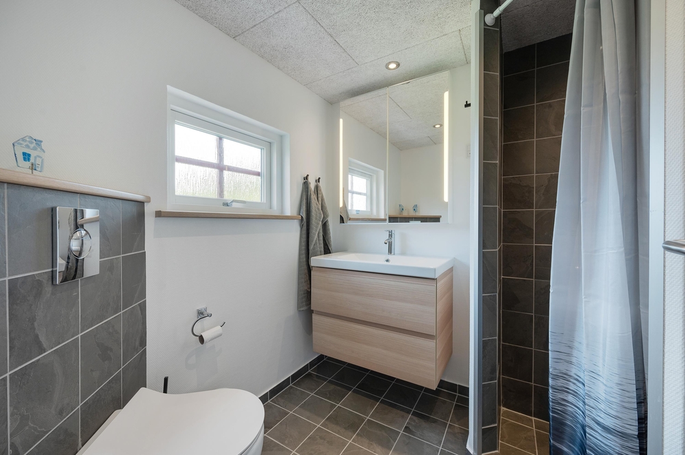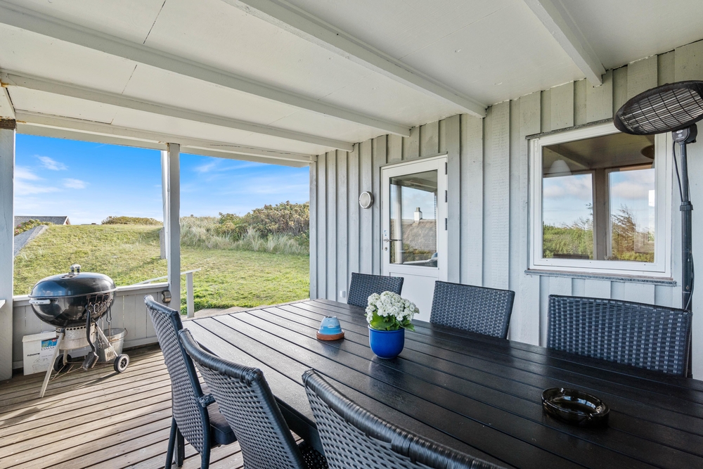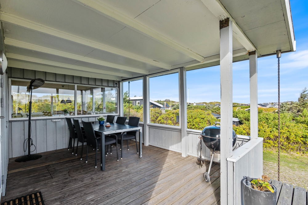 Sommerhuset har en hyggelig udestue mod nord, samt en stor solterrasse mod sydøst og en mod vest. Især terrassen mod vest er skøn, da I kan være helt jer selv, og I kan ikke mindst nyde lyden af Vesterhavets brusende bølger, der slår ind mod strandkanten. Selvom I kun er få minutters gang fra Søndervig centrum, er der særdeles roligt omkring sommerhuset, hvilket gør at dette sommerhus er et godt valg for den familie, som ønsker ro og en ugenert beliggenhed.