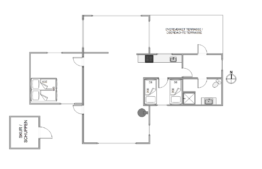 Der er to gode soveværelser i sommerhuset ? et med dobbeltseng og et med to enkeltsenge. Desuden hører der et anneks med til sommerhuset med to enkeltsenge, hvor den ekstra plads kan udnyttes til overnattende gæster.