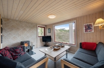 Hvor end I kigger hen er der hyggelige omgivelser og en rar atmosfære, og det er derfor et sommerhus med en masse sjæl. Sommerhuset er hyggeligt indrettet med to gode stuer og en mindre køkkenafdeling. Fra den nordvendte stue kan I nyde panoramaudsigten mod Søndervig centrum og opleve solnedgangen bag klitrækkerne. Og i den nordvendte stue finder I et hyggeligt hjørne med pæne møbler, brændeovn og fladskærms-tv, hvor familien om aftenen kan samles om en god film.