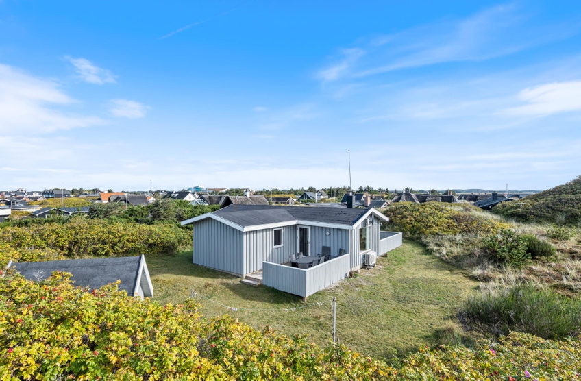 I en lomme tæt på centrum, og med kort afstand fra det brusende Vesterhav, ligger dette charmerende og hyggelige højtbeliggende sommerhus med en fantastisk udsigt ud på feriehusområdet. Sommerhuset har ferieadressen Nordsøvej 60 og ligger på en skøn klitgrund, hvorfra der er direkte sti ned mod stranden. Det er derfor utroligt nemt og hurtigt for jer, at komme ned til stranden, især fordi stranden kun ligger 250 meter væk.
