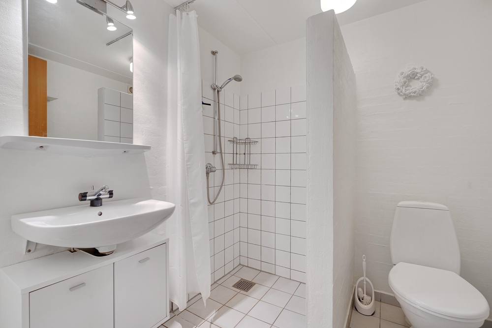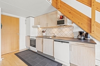 Lejligheden fordeler sig på to etager ? ovenpå finder I to soverum, et med enkeltsenge og et med en køjeseng, mens underetagen er delt op i et kombineret køkken- og stuerum, et enkelt soveværelse med dobbeltseng og badeværelset, som er udstyret med gulvvarme.