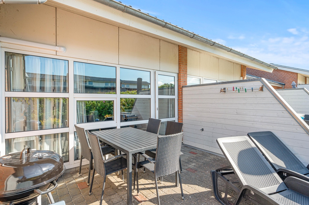 I Vejers Strands skønne ferieområde ligger denne ferielejlighed på Nordvej 11- 16. Her får I et venligt indrettet feriehjem med plads til 6 personer. Med en beliggenhed kun 100 meter fra stranden og adgang til en fælles indendørs swimmingpool er I sikret badeferie uanset årstid, vind og vejr!