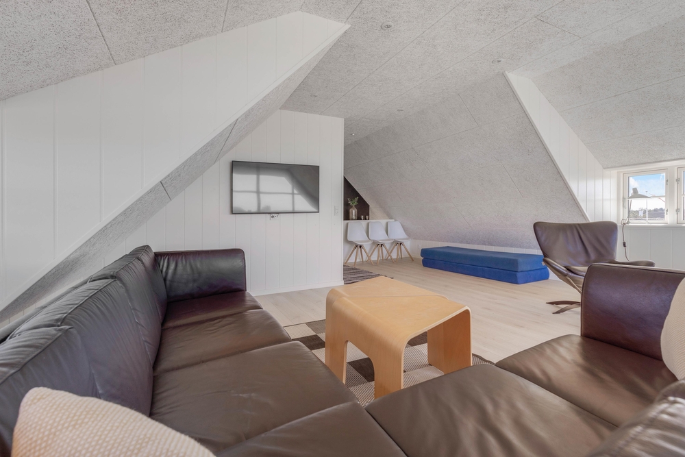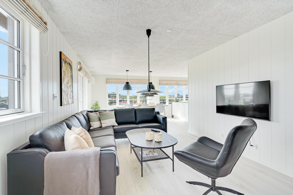 Stuen på første sal sørger for at hyggen kan blive sluppet løs, selv på regnvejrsdagene kan man sidde og nyde udsigten eller tænde for fjernsynet.
