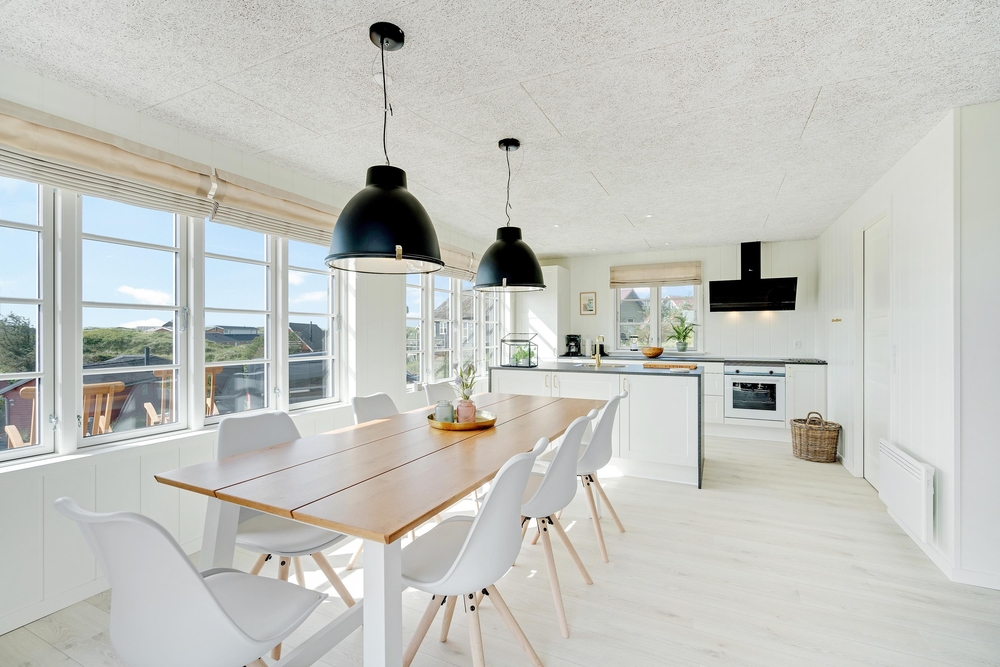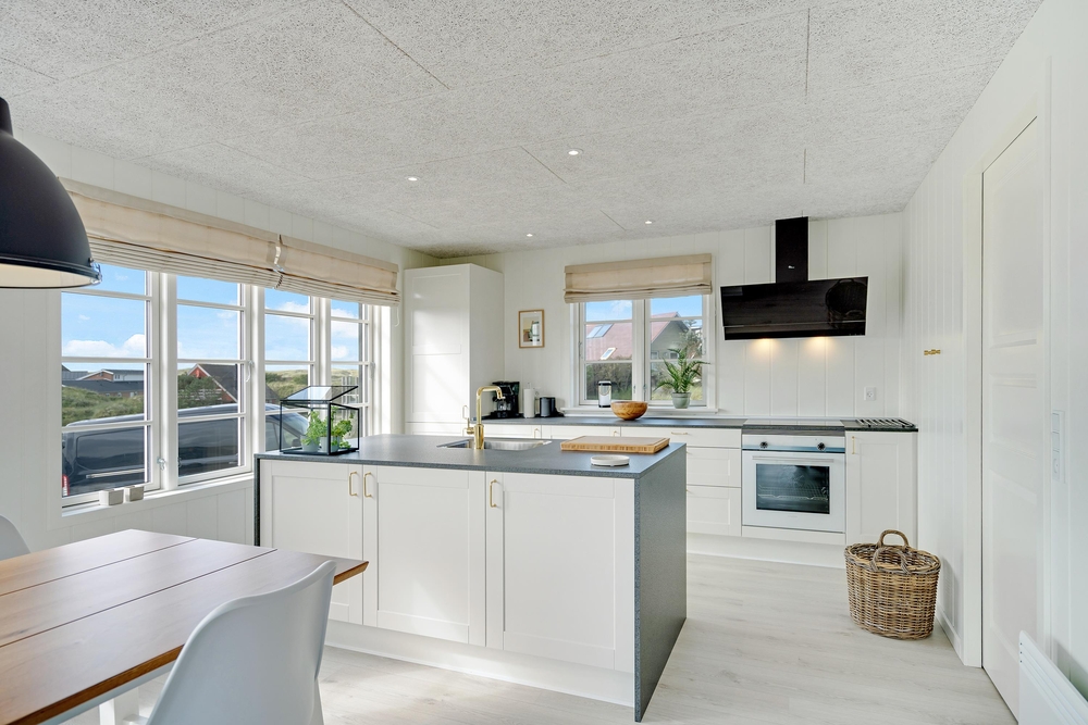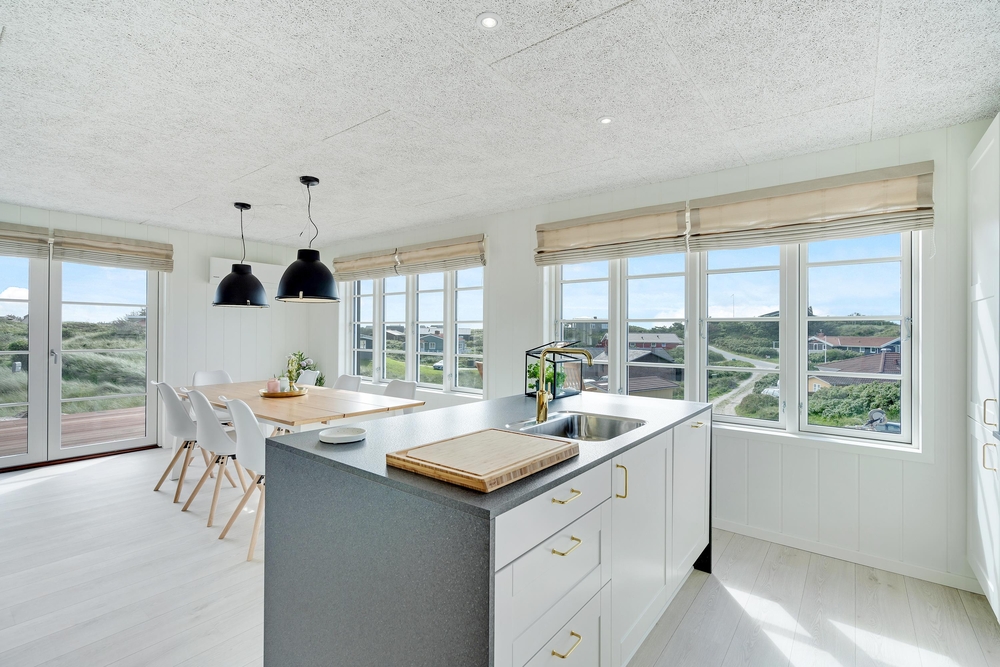 Husets hjerte er det store fællesområde, der kombinerer køkkenalrum og stue. Her kan hele familien samles og lægge planer for morgendagen over en god middag eller tage et spil kort sammen med en nybrygget kop kaffe.