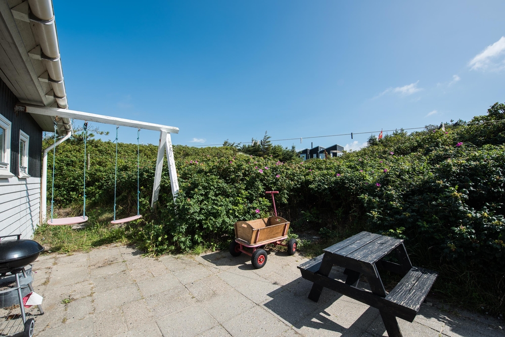 Sommerhuset ligger bare 200 meter fra Vesterhavet. Det tager derfor ikke ret lang tid at komme ned til vandet. Vejers Strand er kendt for sin hvide sandstrand, og på sydstranden finder I en lille strækning, hvor I må tage bilen med. Sommerhuset ligger samtidig i et område med smukke naturoplevelser som f.eks. Nationalpark Vadehavet og smukke klitplantager.