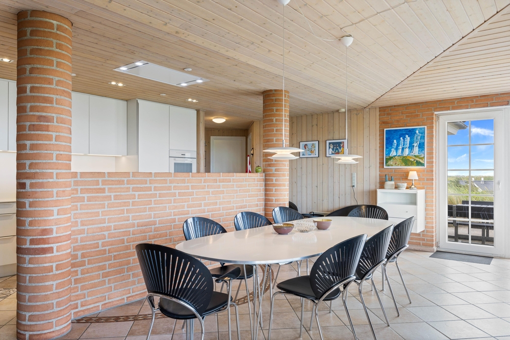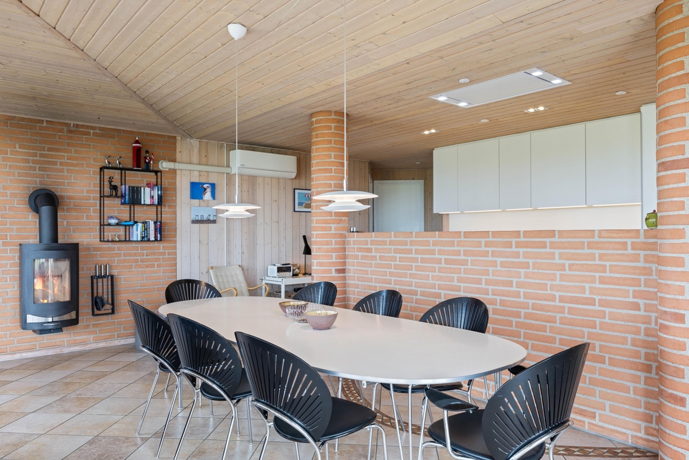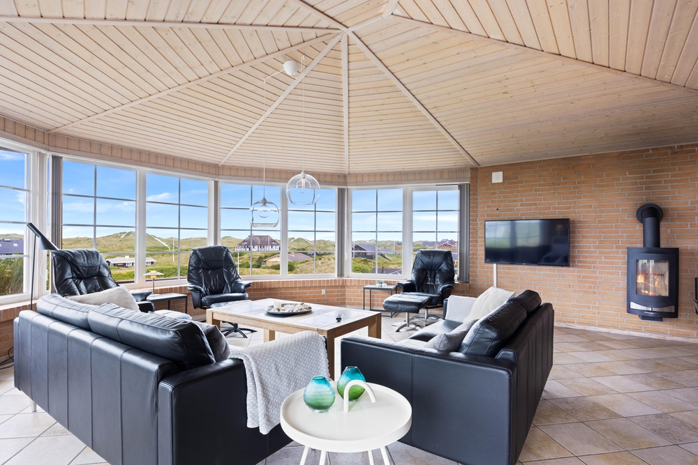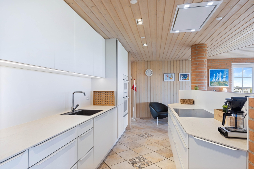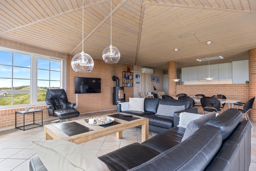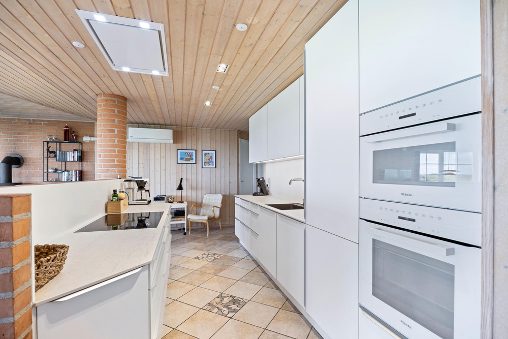 Hjerterummet er store opholdsrum med stue, spiseplads og køkken i ét. Her er et stort smukt vinduesparti, som inviterer dagslyset indenfor og giver jer en smuk udsigt udover klitterne. Her kan I nyde hinandens nærvær ? også selvom i hver især laver noget forskelligt. Nogle er måske gået i køkkenet for at bage, andre nyder duften deraf, mens de læser en god bog i sofaen eller planlægger morgendagens aktiviteter. Når hyggen skal helt til tops, kan I tænde op i brændeovnen og nyde varmen breder sig. Skønt er her både gulvvarme samt en energisparende varmepumpe, som sørger for et behageligt indeklima. Køkkenet er godt indrettet og udstyret med alt, hvad der skal bruges og renoveret i 2022.