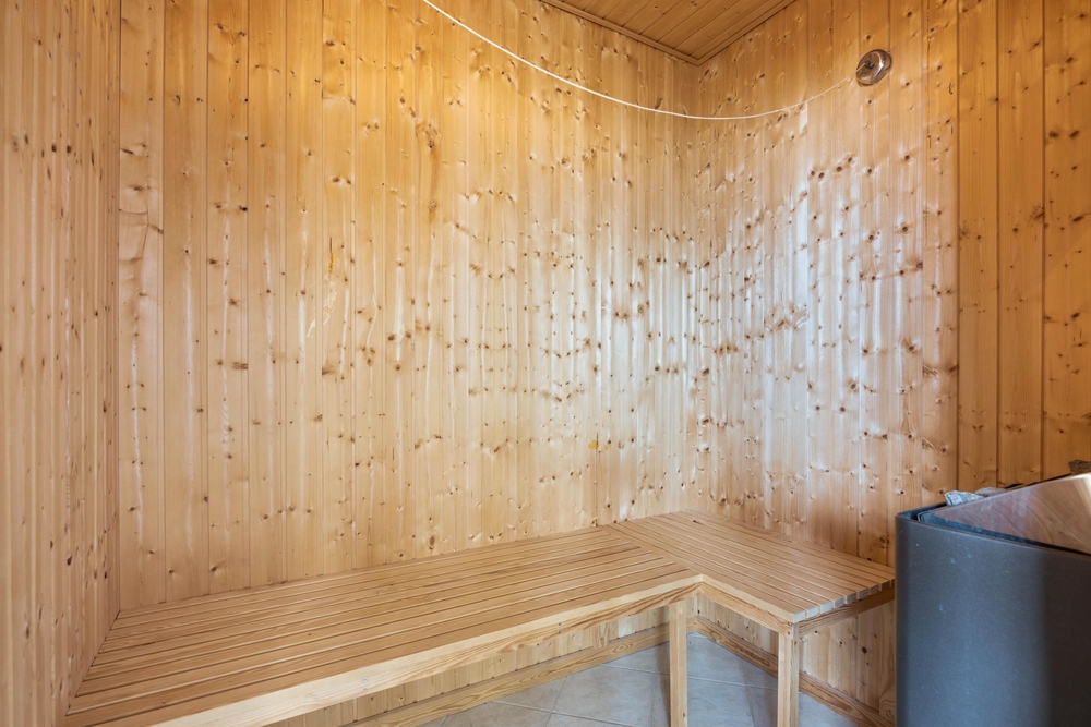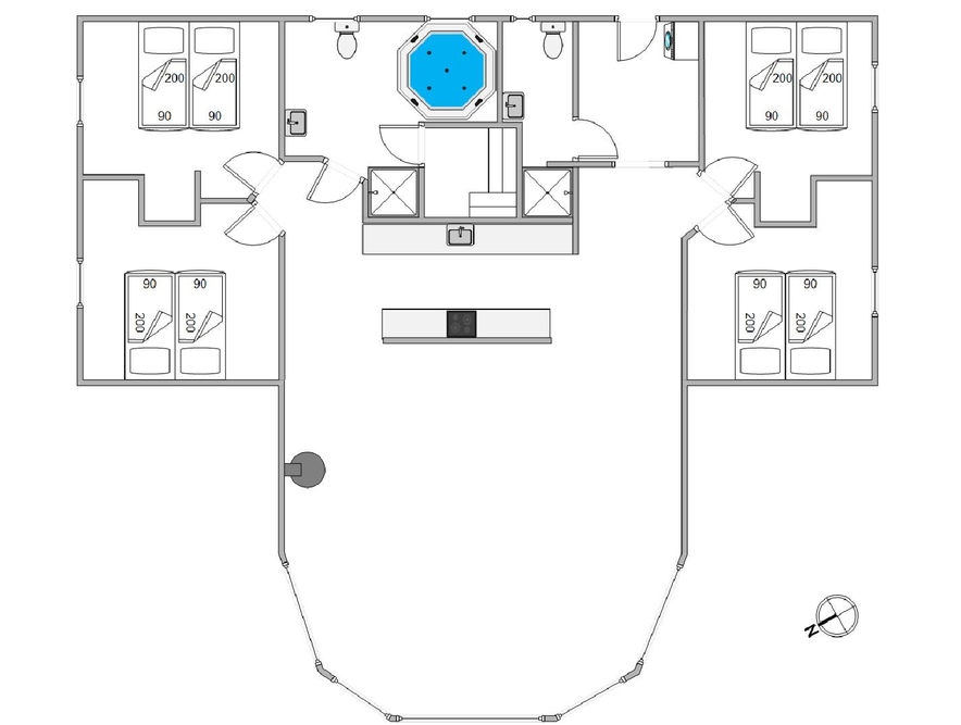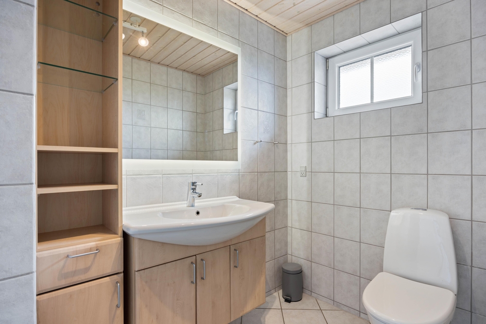 Praktisk er her 2 fine badeværelse, begge med gulvvarme og brus, så I undgår morgenkøen. På det store badeværelse finder I også feriehusets sauna og spabad. Her kan I slappe af i det varme boblende vand. De 8 sovepladser er fordelt på 4 fine værelser, som alle er udstyret med behagelige dobbeltsenge.