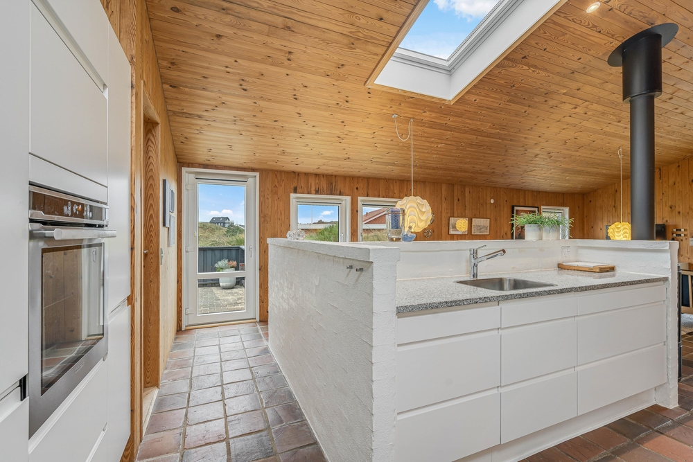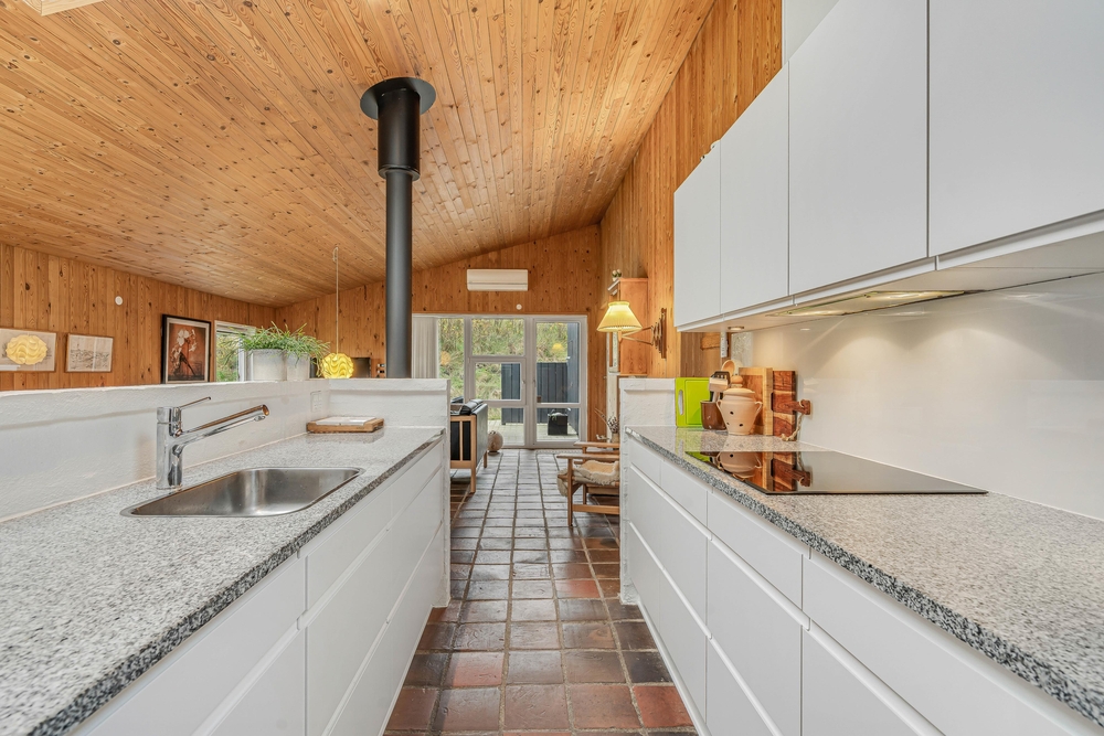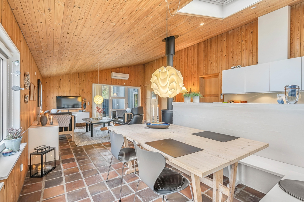 I sommerhuset vil I helt sikkert komme til at tilbringe mange skønne feriestunder i alrummet. Her er køkkenet, spiseplads og stue nemlig forenet, så I kan være sammen om at lave mad, spille spil og se film. Her er desuden Chromecast, så I kan streame jeres yndlingsfilm. Brændeovnens knitren i baggrunden og varme fuldender den hyggelige feriestemning imens.