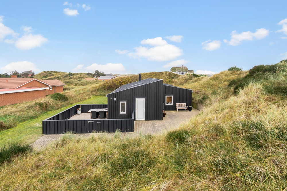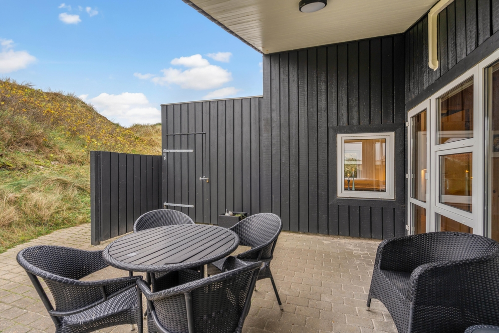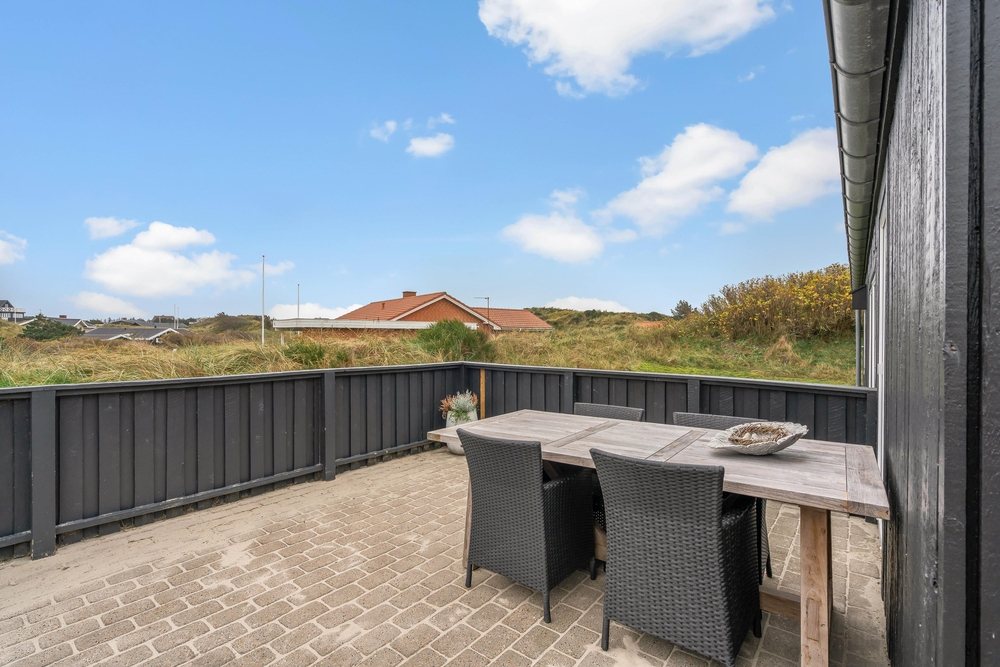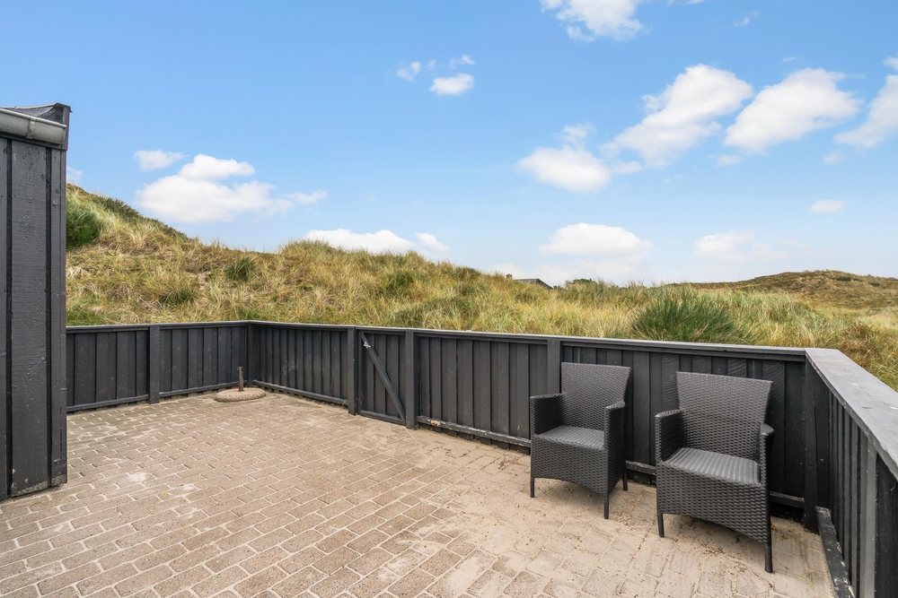 På sommerhusets udeområde har I flere skønne terrasser, som I kan rykke ferien ud på på de solrige feriedage. Her kan I læne jer godt tilbage i havemøblerne og liggestolene, mens I nyder ferien, solens varme og lyden af brændingen i baggrunden.