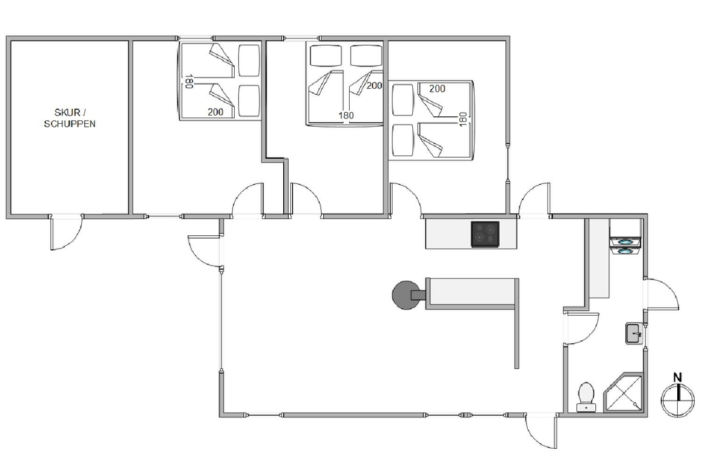 I det 91 kvadratmeter store sommerhus er der 3 gode soveværelser, som I kan søge mod om aftenen efter en dejlig feriedag. På hvert af soveværelserne venter jer en dobbeltseng, hvor I kan få jer en god nats søvn, så I kan blive klar til næste feriedag.