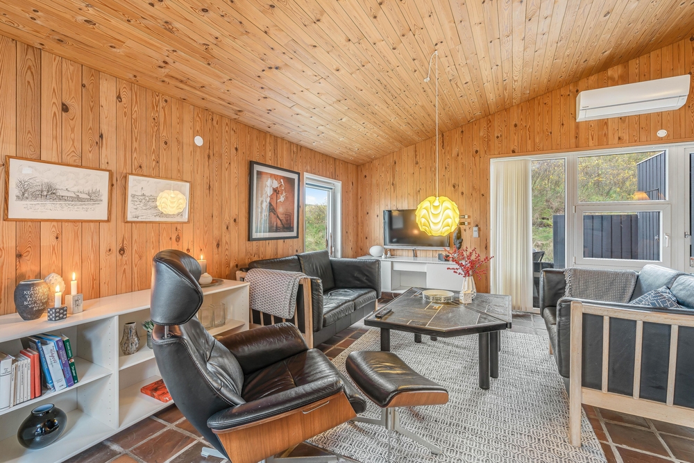 På sommerhusets badeværelse er der gulvvarme, og I slipper derfor for at fryse jeres tæer, når I står op næste morgen. Desuden er der en varmepumpe i feriehuset, der sørger for, at I har et godt indeklima i løbet af ferien.