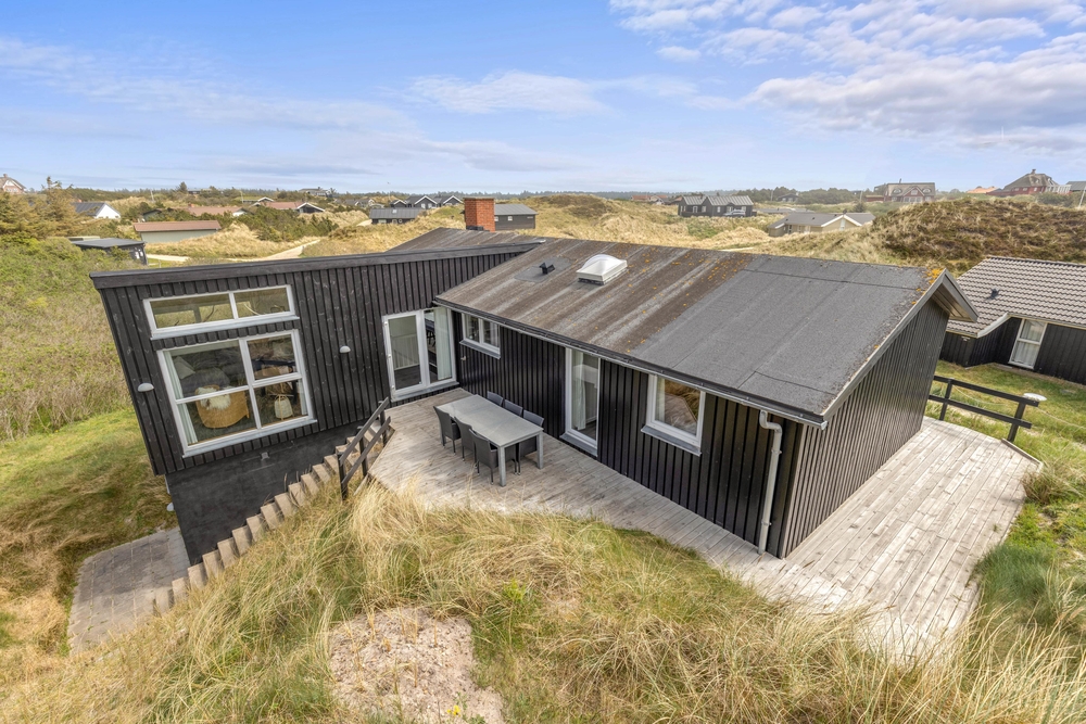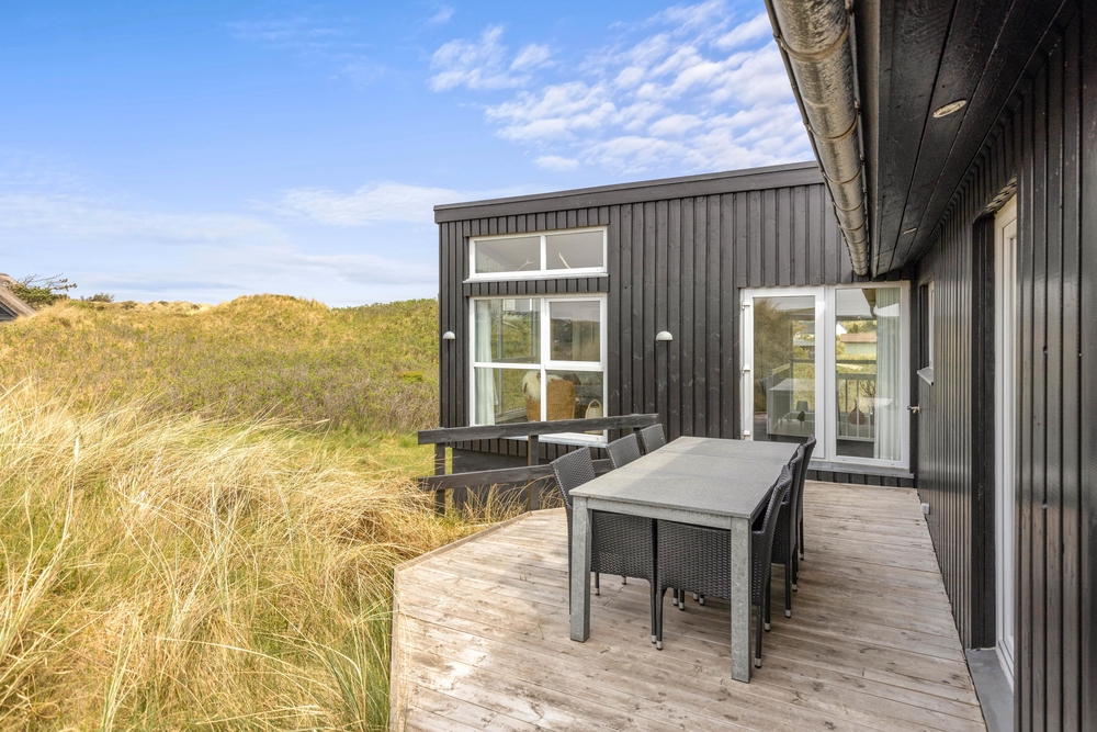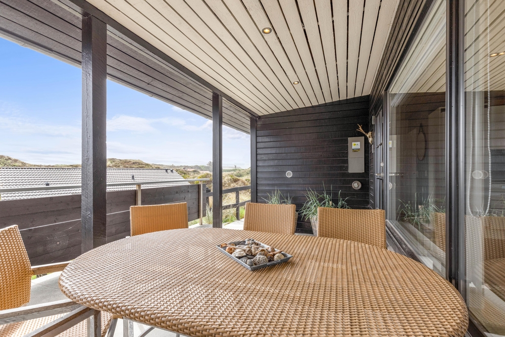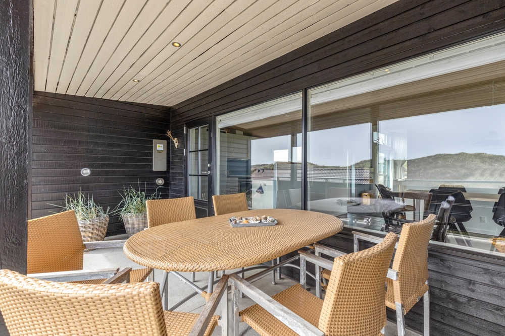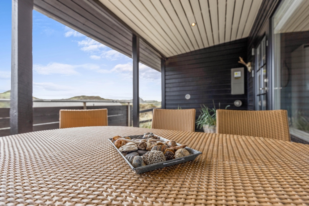 Udendørs byder sommerhuset på flere skønne terrasser, hvor I kan tilbringe de solrige dage og lune aftener. Den ene terrasse er åben, og ligger mod vest, hvor solen er om eftermiddagen og aften. Den overdækkede terrasse vender mod syd, og er skøn at opholde sig på om formiddagen og hen over middag. Terrassen er delvist overdækket og afskærmet, så her kan I sidde i ly og læ for eventuel vestenvind.