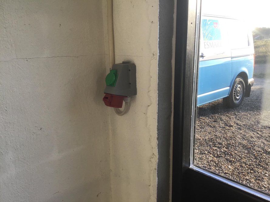 Lademuligheden for el bilen er et CEE kombistik (kraftstik), medbring eget ladekabel.