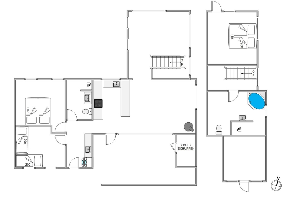 Sommerhuset er indrettet med 2 badeværelser, der begge har gulvvarme. Når I trænger til en afslappende stund, kan I søge mod det ene af badeværelserne, hvor der står en dejlig spa klar til at forkæle jer i det varme, boblende vand, hvor I kan komme helt ned i gear.