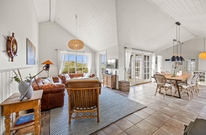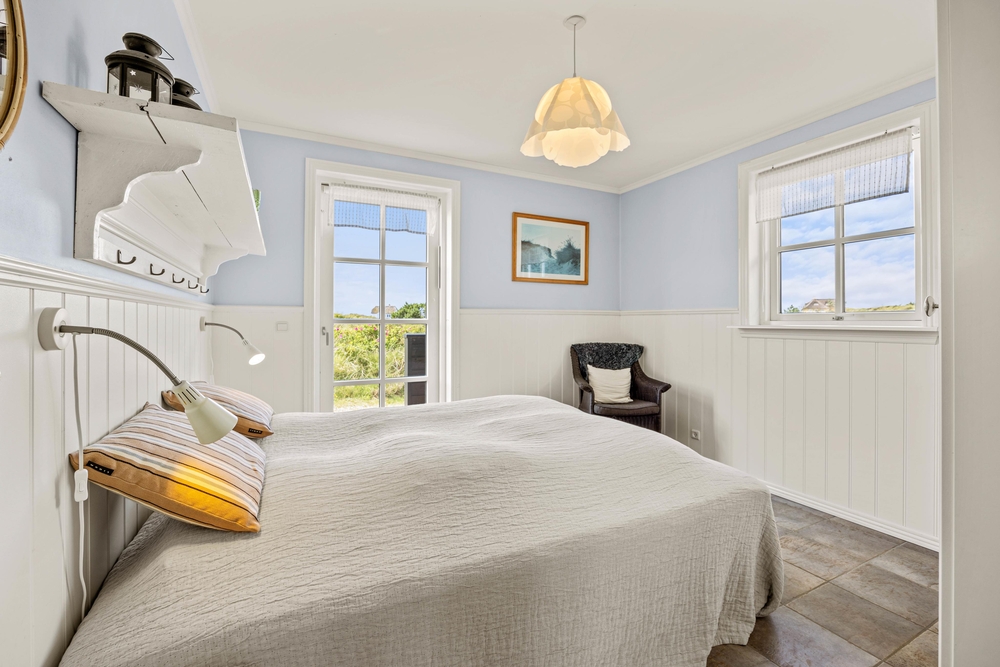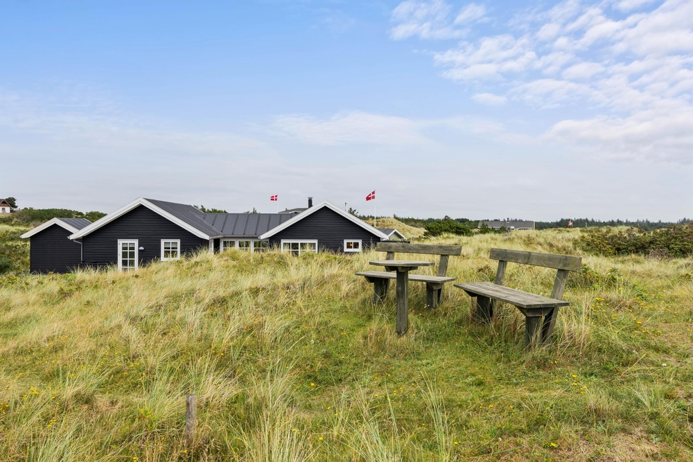 Kun 300 meter fra det brusende Vesterhav finder I dette store sommerhus til 8 personer. I vil hurtigt falde til i den lyse og venlige indretning med højt til loftet og lækre wellnessfaciliteter, og på den store terrasse finder alle feriegæster nemt en plads i solen.