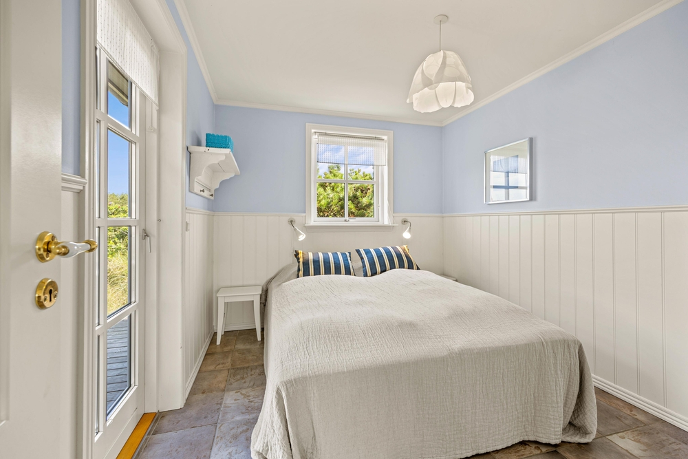 Sommerhuset på Nordvej 90 B råder over hele 140 kvadratmeter og er et ideelt valg til en familieferie ved vandet. Husets indre er prydet med lyse farver, store vinduespartier og høje lofter, hvilket får feriehjemmet til at virke endnu mere rummeligt og åbent.