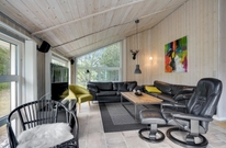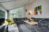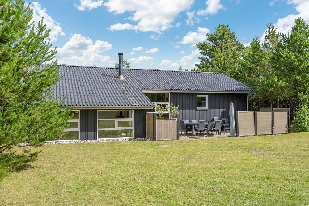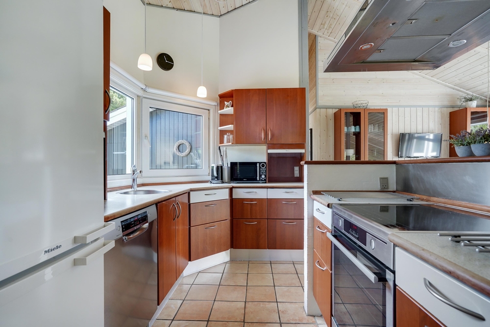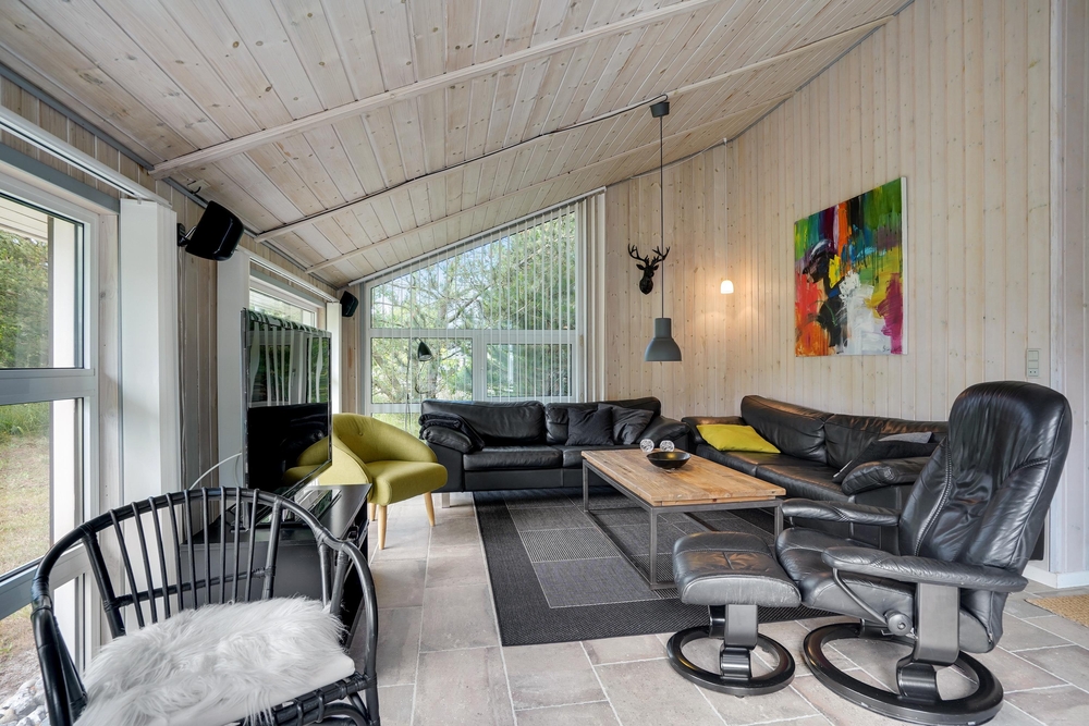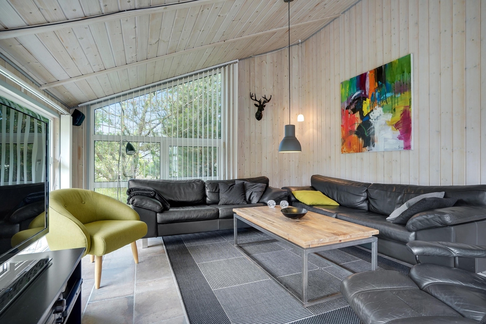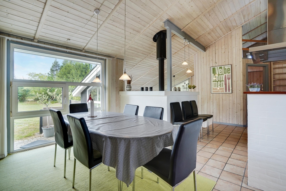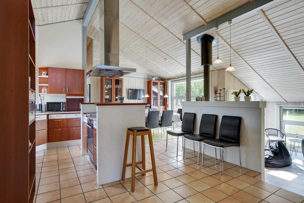 Især børnefamilierne og hundeejerne vil føle sig rigtig godt tilpas her, og på de 126 m² finder I god plads til 8 personer i de charmerende omgivelser. Lyse trævægge, store vinduespartier og en og stilfuld indretning sørger for en dejlig afslappende atmosfære, og her vil I med sikkerhed nyde ferien fuldt ud med jeres nærmeste med hjemmelavede måltider rundt om det store spisebord og senere kan I tage et par trin ned til stuen og holde filmaftener på sofaen foran den knitrende brændeovn. Skal der lidt mere spænding til, kan I udfordre hinanden til et slag bordfodbold.