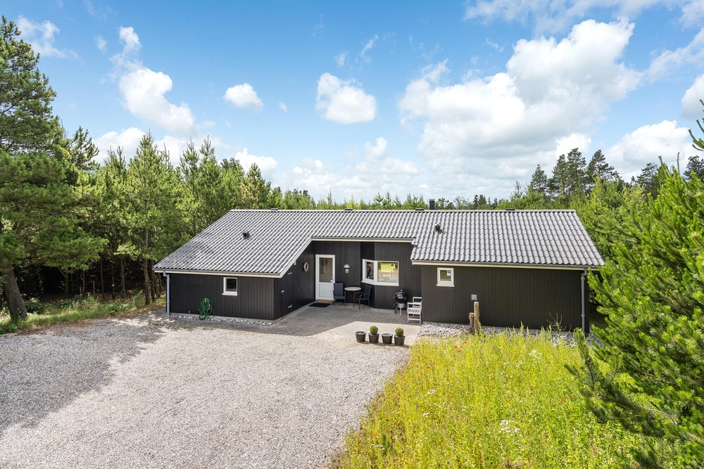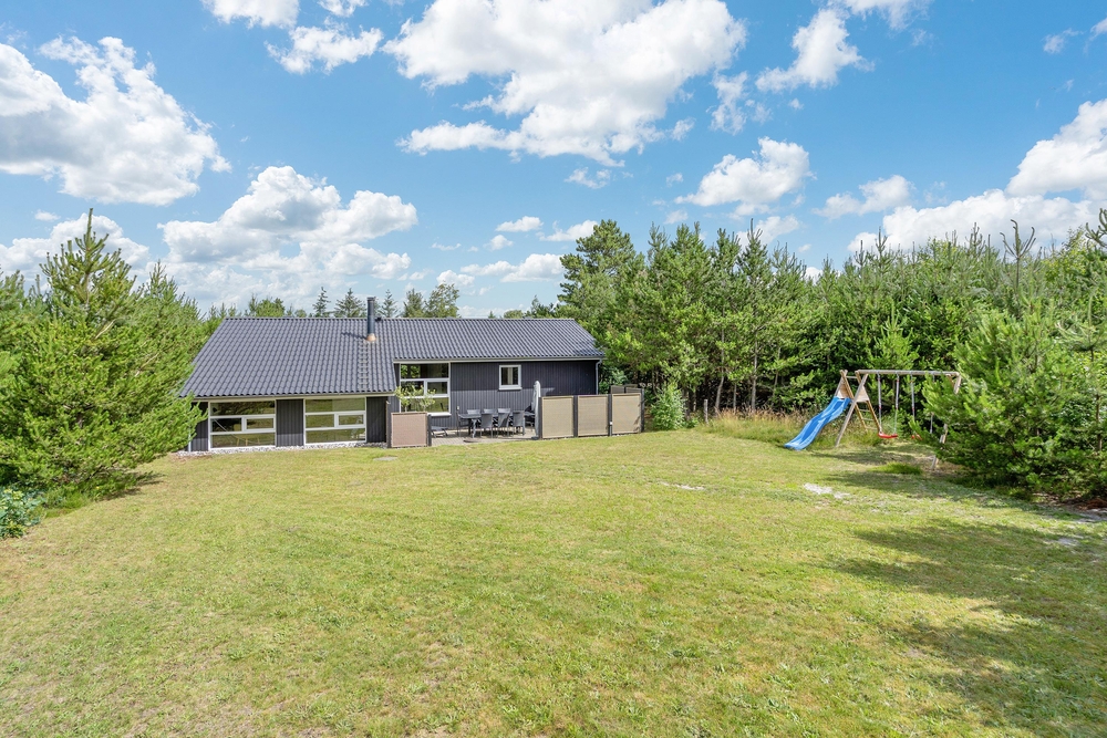 De mindste feriegæster vil også falde godt til her ? og den store græsplæne med gyngestativ, rutsjebane og sandkasse bliver et sikkert hit, hvor de kan bruge timer på sjov og leg. Samtidig kan hundene også få lov til at tumle frit omkring, alt imens I nyder solens varme og feriefreden. Den frodige natur omkring sommerhuset indbyder til rolige vandreture eller spontane skovudflugter, hvor hele familien kan opleve de mange facetter af Houstrups skønhed.