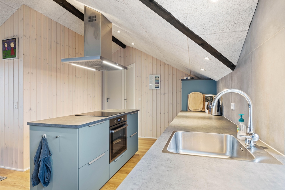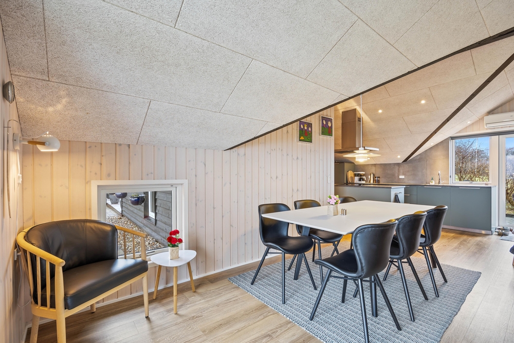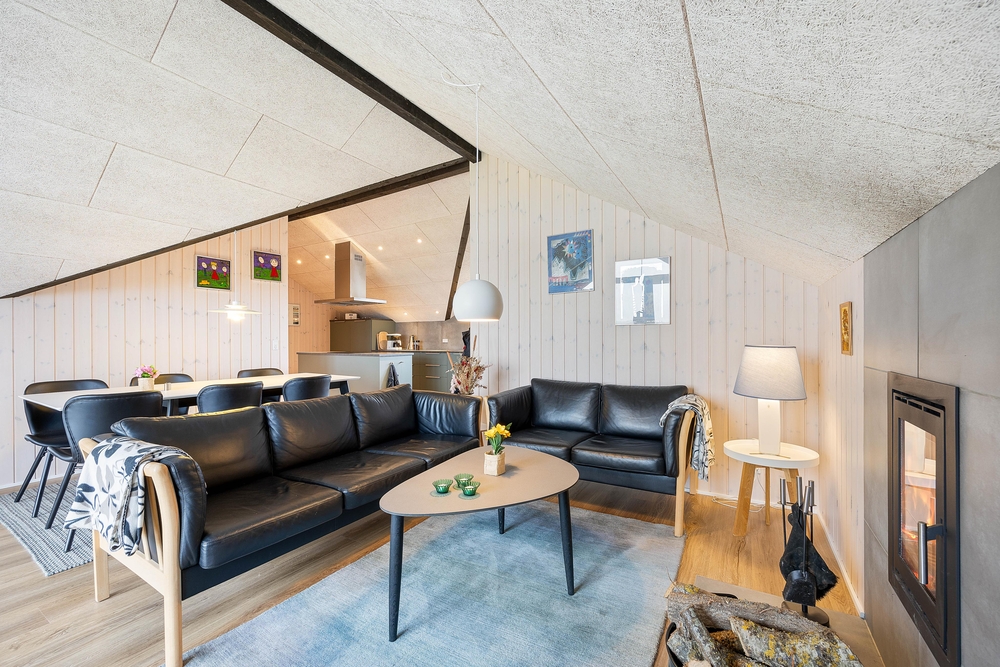 Når I ankommer til feriehuset, vil I straks glemme hverdagens stress, for dette feriehus har alt, hvad I skulle få brug for til en god ferie. Den store stue er feriehusets hjerte. Her kan I lave mad sammen i køkkenet, samles om bordet til sjove spil eller sætte jer godt til rette i sofaen med en god film på smart Tv?et via Norlys-appen.