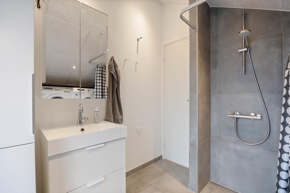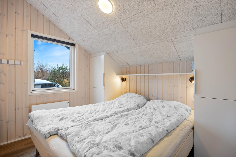 Brændeovnen sørger for hygge, når vejret ikke spiller med. Det behagelige indeklima sikres af en energibesparende luft-til-luft-varmepumpe. Badeværelset er udstyret med gulvvarme, så I undgår kolde fødder om morgenen. Der er også vaskemaskine og tørretumbler, så bagagen ikke optager for meget plads i bilen.