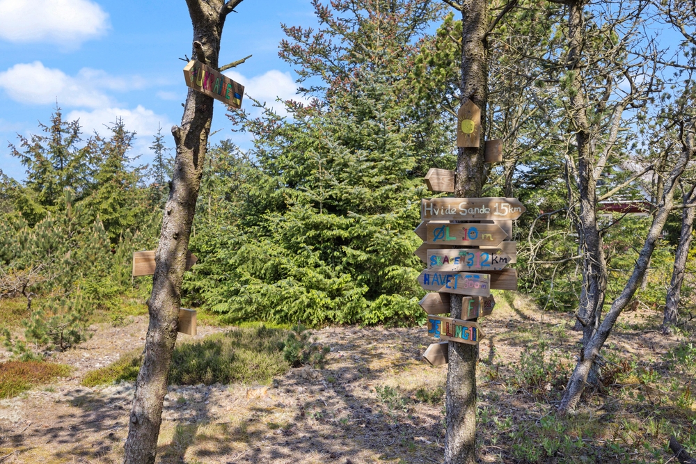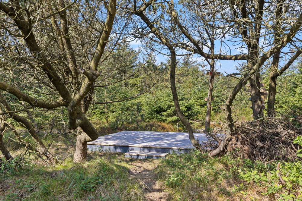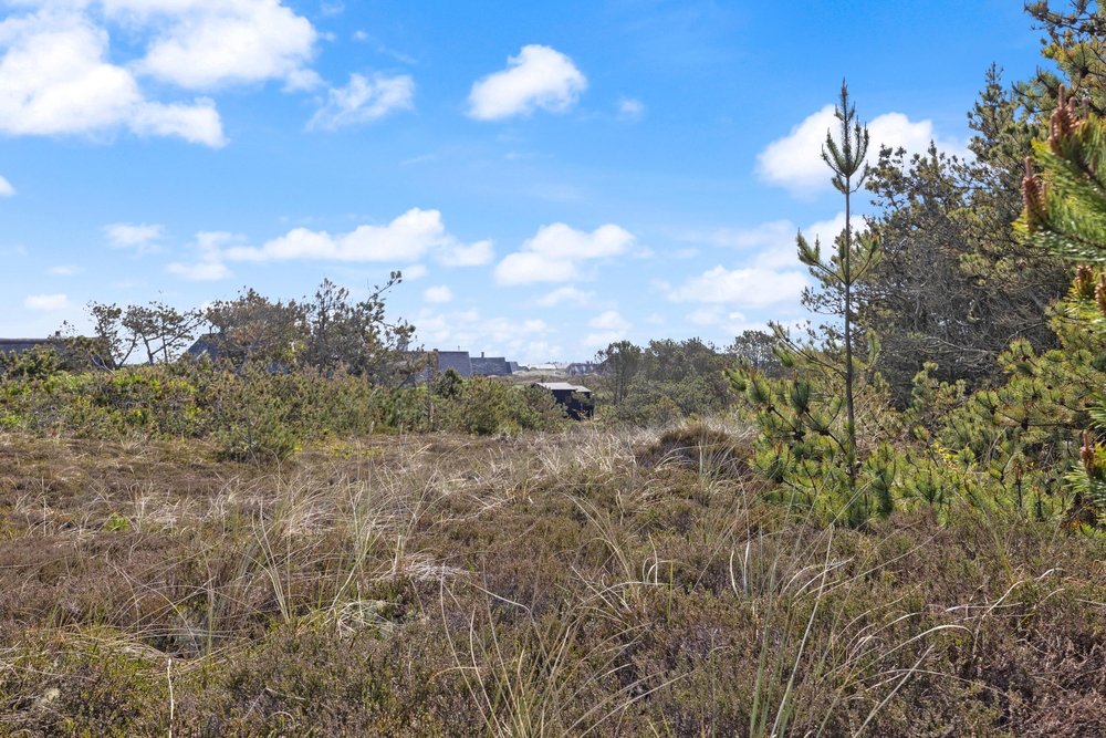 Der er både en åben, afskærmet- og en lukket terrasse ved sommerhuset, hvor I kan nyde udelivet i de komfortable havemøbler og liggestole. Den opvoksede beplantning på naturgrunden bidrager med læ og en beroligende skovduft af fyr. Her kan I gå på opdagelse med børnene, hvis ikke I vælger at tage dem med til stranden i stedet, og samle muslinger og skaller, bygge sandslotte og dyppe tæerne i Vesterhavet.